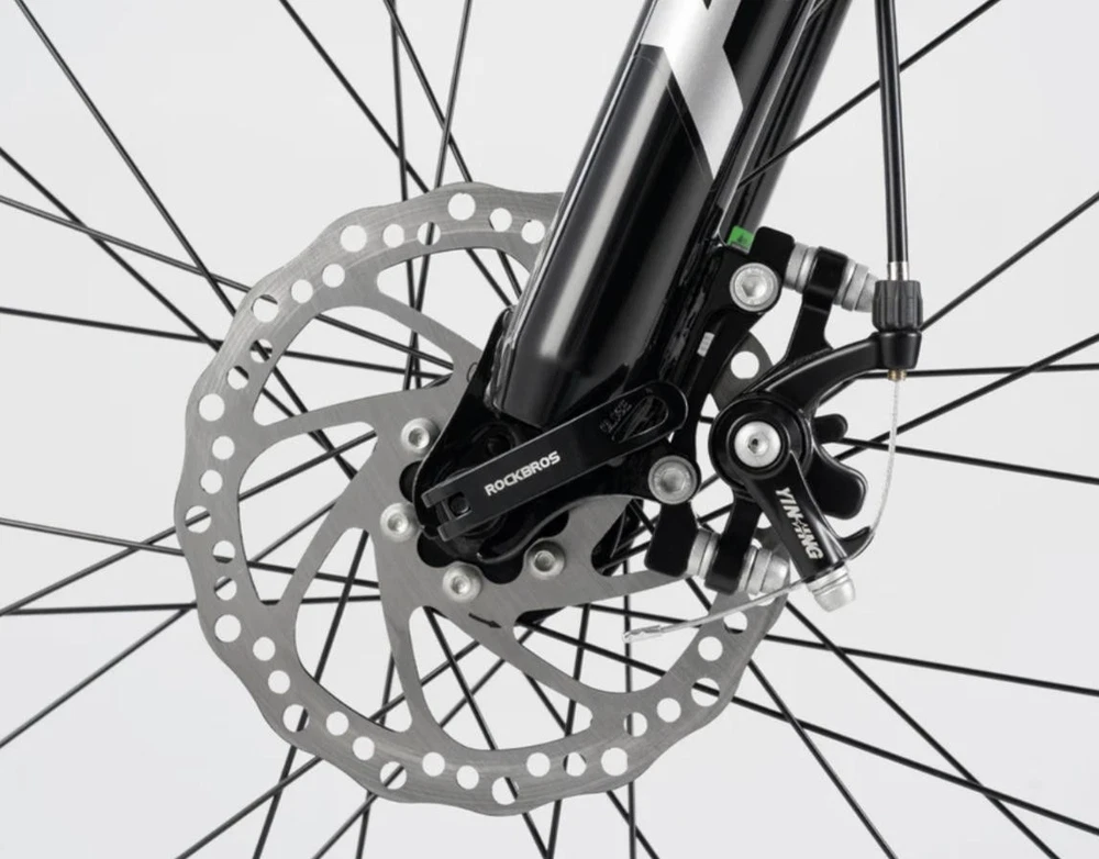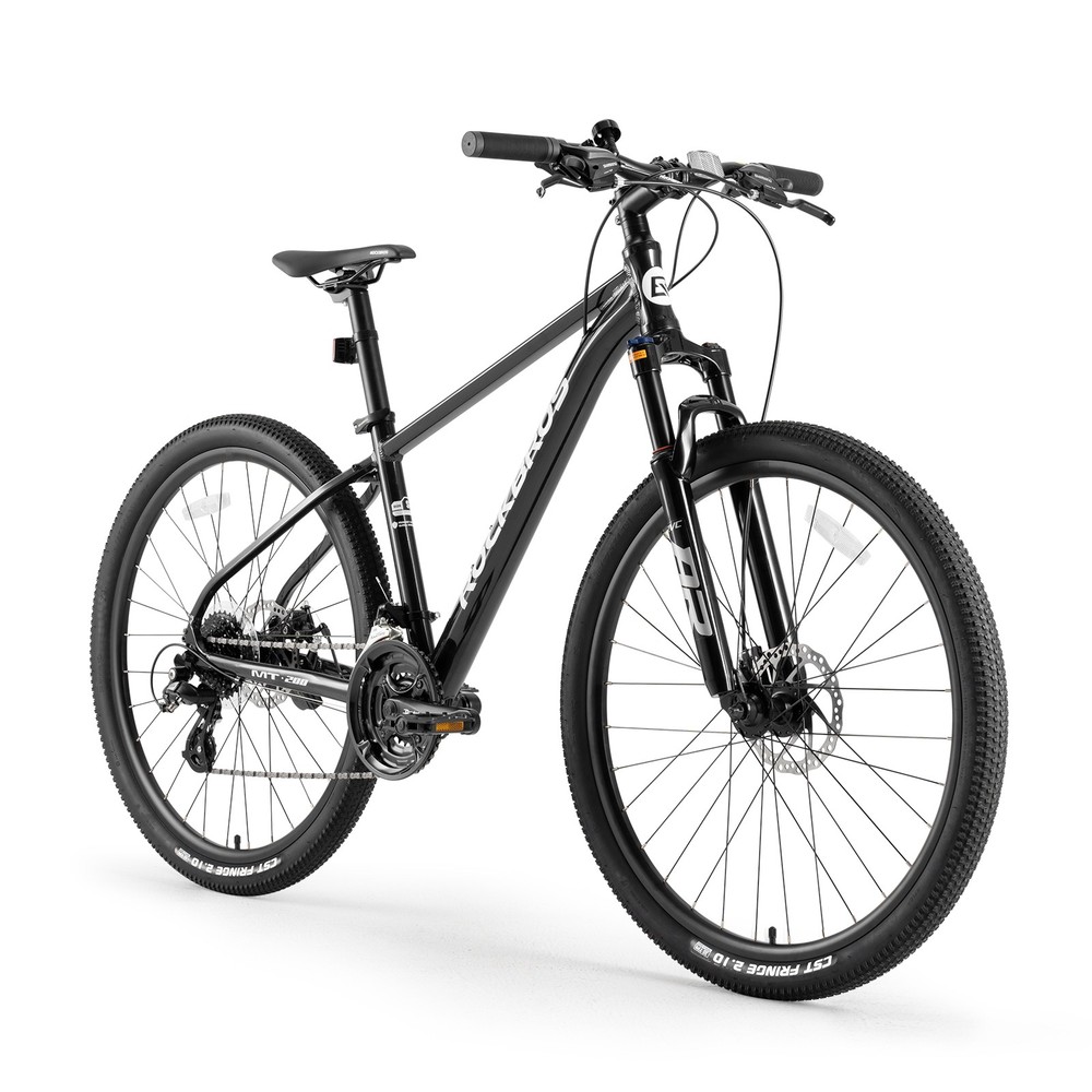 Bike frame: ROCKBROS Aluminum frame Front Fork: Aluminum alloy shock absorber Front fork, Mechanically locked/Spring adjustable Handlebar:31.8 caliber aluminum alloy flat handle Front vertical pole: ROCKBROS Aluminum alloy Cushion: ROCKBROS cushion Seat pole: Aluminium alloy seat post Shift handle: SHIMANO ST EF500 Speed shift: SHIMANO FD TY300(Forward dial)/RD M310(Back dial) Freewheel: : SHIMANO CS HG200-8 12-32T 8 Speed Brake: Aluminium alloy wire pull mechanical disc brake Chainring: Prowheel aluminium crank four-jaw 24/34/42T Rim: Aluminum alloy double-layer knife ring 18MM high Hub: Aluminum alloy bearing quick release hub Spoke:14G Medium carbon steel with copper cap Crank: Aluminum alloy Tire: CST 27.5x2.1" Stab-proof F/V Chain: 8-speed chain Bike weight: about 4.62kg(M) Frame size 16''(S) 18''(M) 21''(L) suitable height 160-175CM 170-185CM 175-198CM recommended weight Within 100KG Within 100KG Within 100KG body length 170cm 170cm 170cm handlebar height 100cm 100cm 100cm handlebar width 61cm 63cm 65cm handlebar length 7cm 8cm 9cm Note: Due to different measurement tools and methods, the data will be slightly different. The specific detailed dimensions are subject to the actual product. Lockable shock absorber – Easily switch between city and off-road modes by locking or unlocking the shock absorber to adapt to various terrains. 24-speed Shimano shifting system – Provides smooth and accurate gear changes for both steep climbs and fast descents. Lightweight aluminum alloy frame – Built for strength and durability, the frame reduces rider fatigue while offering enhanced stability. 27.5-inch large wheel diameter – Ensures a smoother ride over gravel and obstacles, reducing bumps and minimizing side-slipping. CST non-slip tires – High-quality, wear-resistant rubber tires with excellent grip, perfect for a variety of road conditions.