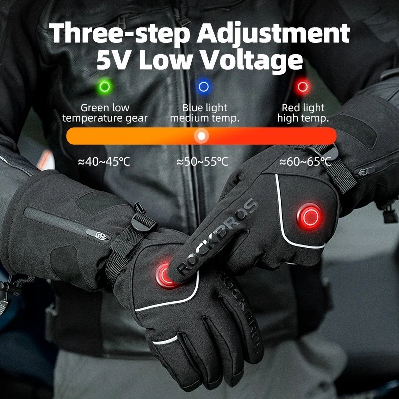 Product Detail Type: Heated Gloves Material: palm: 50% nylon+50% PU; back of hand: polyester; interior: polar fleece Weight: about 750g Size: M/L/XL Current: 1.5A Heat conduction: composite fiber heating element Product Feature Extensive heat on the back of the hand and 5 fingers rapid heating 3 temperature adjustable fabricwind and water repellent Composite fiber heating element Soft and foldable Function 1. Use in outdoor activities to prevent frostbite hands in low temperature climates 2. The heating body is made of high-performance composite fiber heating body that is resistant to folding and tensile strength. 3. High thermal efficiency, can be bent, and generate heat in a large area 4. Use rechargeable high-capacity high-performance lithium battery pack, which can be used about 300-500 times Note 1. Please unplug the power supply in time when not in use 2. Do not pull the power cord too hard to avoid breaking 3. Avoid storing in overheated (over 40 degrees Celsius) humid or corrosive environments 4. When not in use for a long time, charge and activate the lithium battery once every three months and then store it in a dry environment at room temperature 5. Can not be washed directly in water. If it is dirty, wipe the surface of the glove directly with a brush or towel and air dry. 6. If you find that the surface of the lithium battery has bulging or other abnormal phenomena, please stop using it immediately. 7. This product needs to be equipped with a charging head by the customer How to use lithium battery 1. Charge the lithium battery first: Take out the charging cable and insert the power jack of 2 lithium batteries. The first charging takes 12 hours, and the next charging is about 5-6 hours. When the lithium battery is charging, the three lights do not flash, it means that The lithium battery is fully charged. 2Remove the gloves, unzip the battery pocket, pull out the power cord, and insert the plug of the power cord into the circular jack on the lithium battery. 3 Put the lithium battery into the pocket of the glove where the battery is placed, close the zipper, put on the glove, and press the three-speed thermostat to use. Smart Electri Heated Gloves Fingertip touch screen | Fast heat-up | Waterproof liner product information Glove Size & Measurement Three-step Adjustment 5V Low Voltage Single machine switching Easy to operate Thicker And Warmer Sub-zero Resistance Triple fabric + heating fibre Locks in the temperature Composite Fibre Heat Emitters Even heating from the back of the hand and 5 fingers Large Area Heating And Fingertip Warmth Large heat generating area design Hidden Battery Compartment Lightweight and hands-free, quick to install No Longer Tied To Wired Power Built-in rechargeables go where the heat is Fleece Lining Skin-friendly Warmth Softly wrapped, light and warm Extended Wrist Guard Elasticated + snap fastening for extra warmth Finger Touch Design Sensitive conductive leather at thumb and forefinger Leather Palm + Non-slip Rubber Stable grip and no dislodging Combination Clips Can be attached directly to a backpack Gift Lithium battery 4000mah Note: The first charge takes 12 hours and thereafter about 5-6 hours.