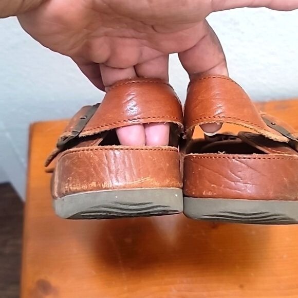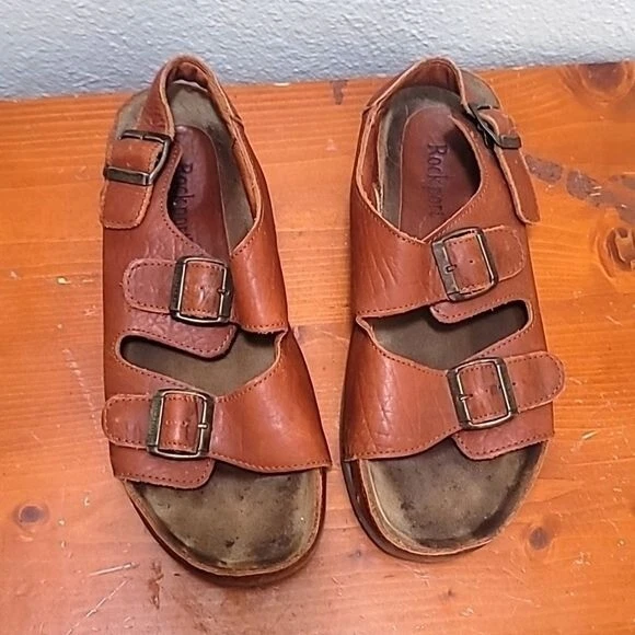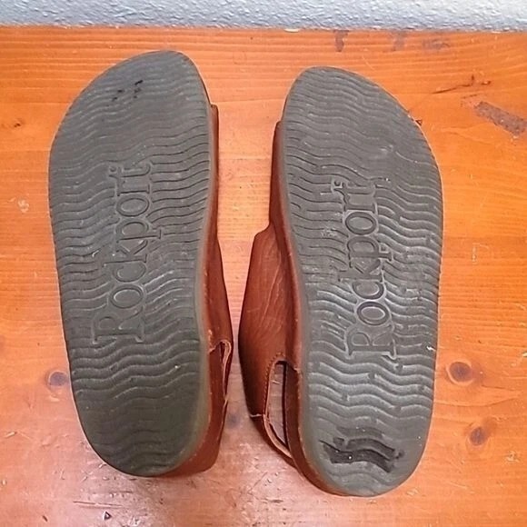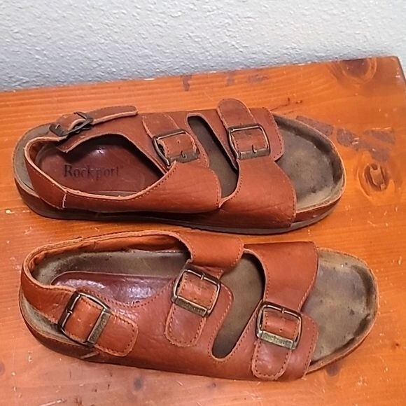 Rockport men's two straps slingback fisherman brown leather sandal upper leather CONDITIONS pre owned, gently used, good conditions. see photo for flaws details