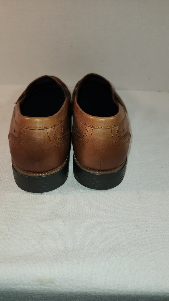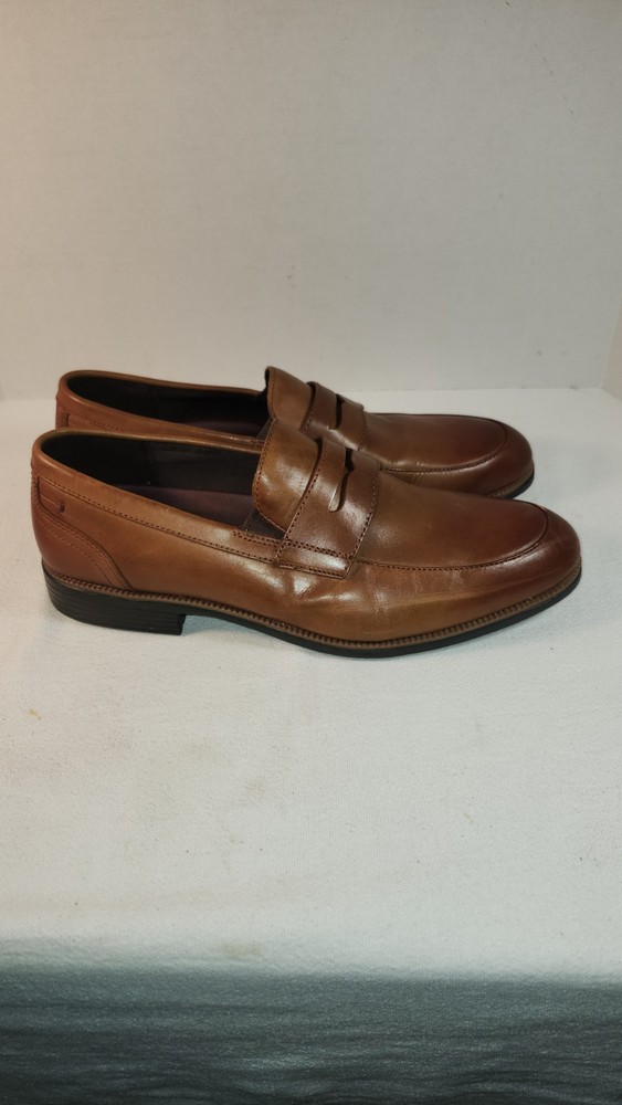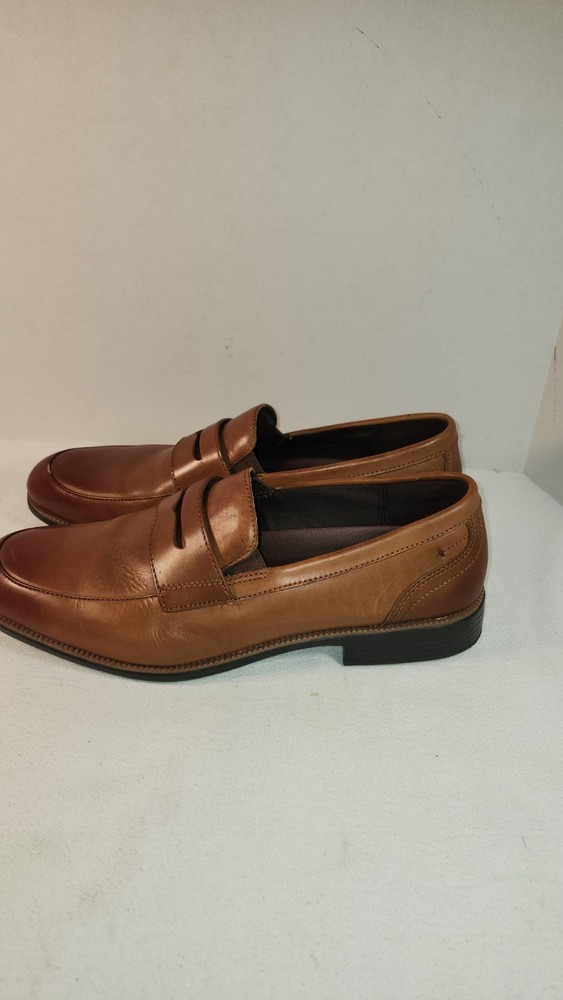 The Rockport Trutech men's penny loafers in brown, size 10.5, are a stylish and versatile choice for any dressy occasion. With a classic slip-on design and a comfortable leather lining, they are perfect for the summer, fall, and spring seasons. The round toe shape and leather upper material add a touch of sophistication to this timeless Oxford style shoe. Made by the reputable brand Rockport, these loafers are sure to provide both quality and style for the modern man.