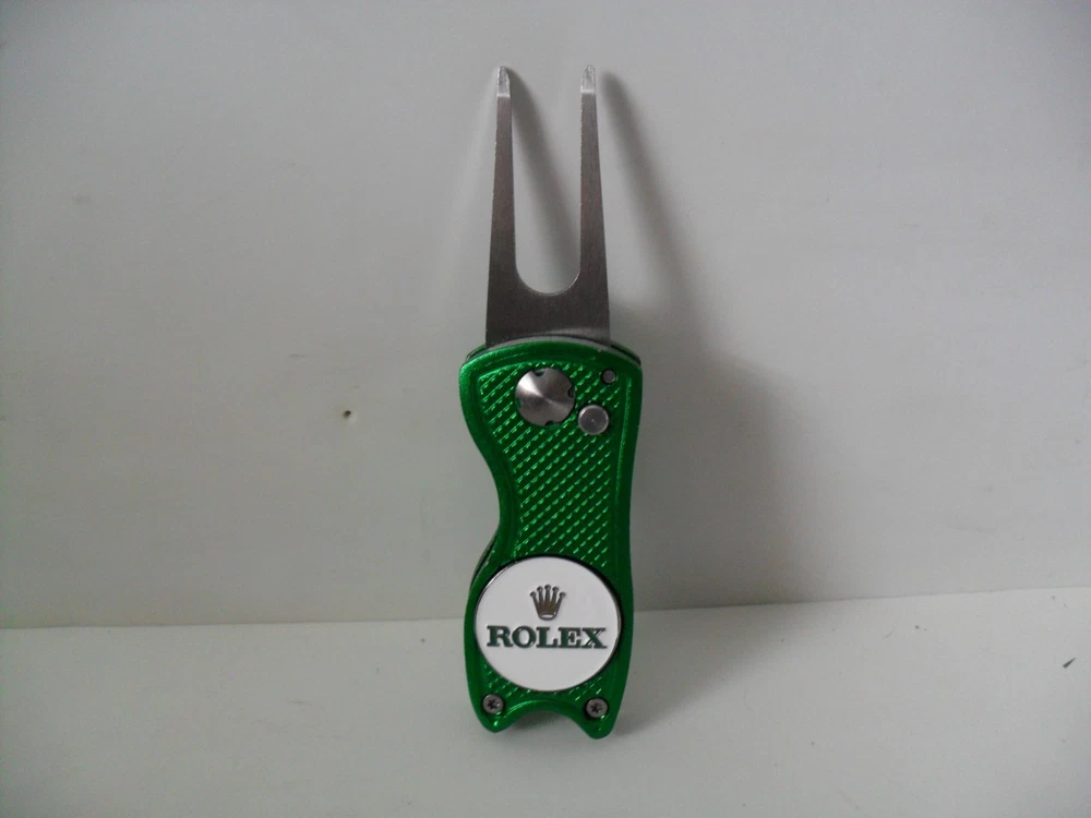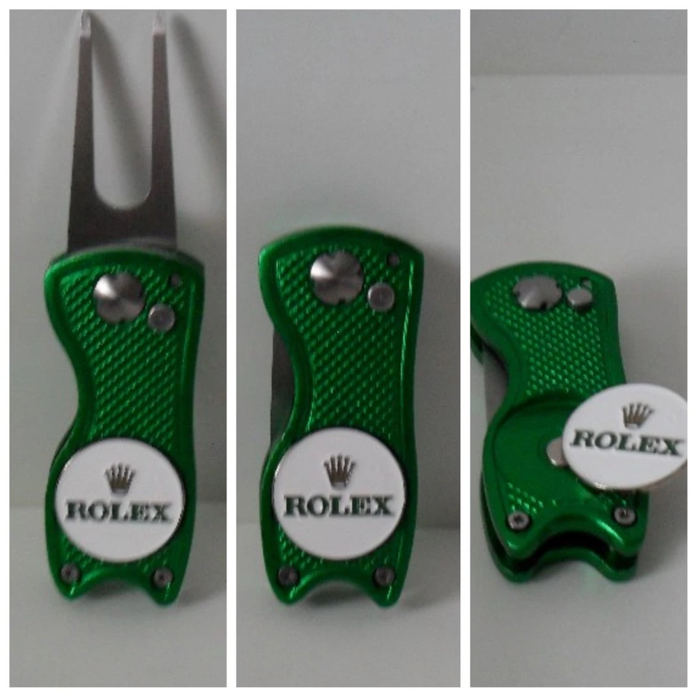 Features: Gun Metal Stainless Steel Spring Bag Hook Material: Water Sealed Zipper, Water Resistant Nylon & Polyester Set Includes: Accessories Pouch, 3 Titleist Pro V1 X Rolex Golf Balls, Rolex Divot Tool With Magnetic Ball Marker, Rolex Logo Golf Scoring Pencil, 5 Rolex Gold Crown Tees Sport/Activity: Golf Brand: ROLEX Type: Pouch, 3 Golf Balls, Divot Tool, Tees, Ball Marker & Pencil Color: Rolex Green Seller Notes: “Brand New - Entire Set Never Used - Excellent Condition”