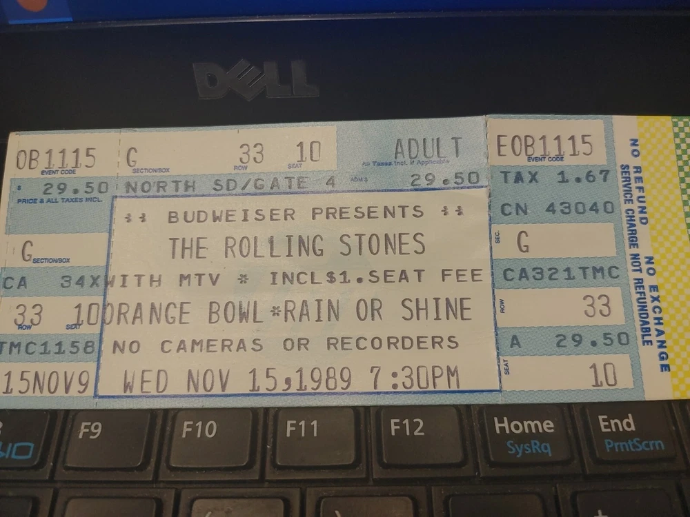 ROLLING STONES 1989 STEEL WHEELS UNUSED Orange Bowl CONCERT TICKET w/ Authentic VIP Backstage PASS.. Nov. 15th 1989.. 100% Authentic. VG+ Condition. Small piece off tape on rear of Ticket...