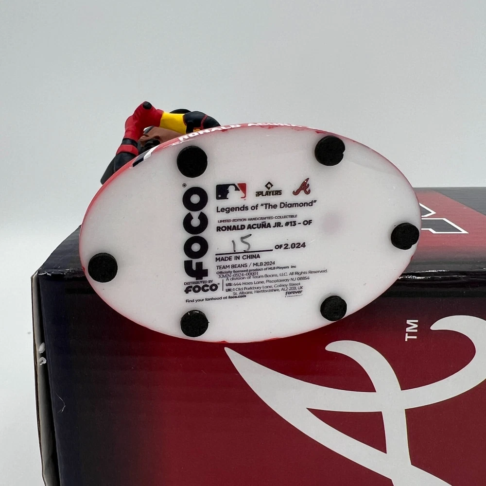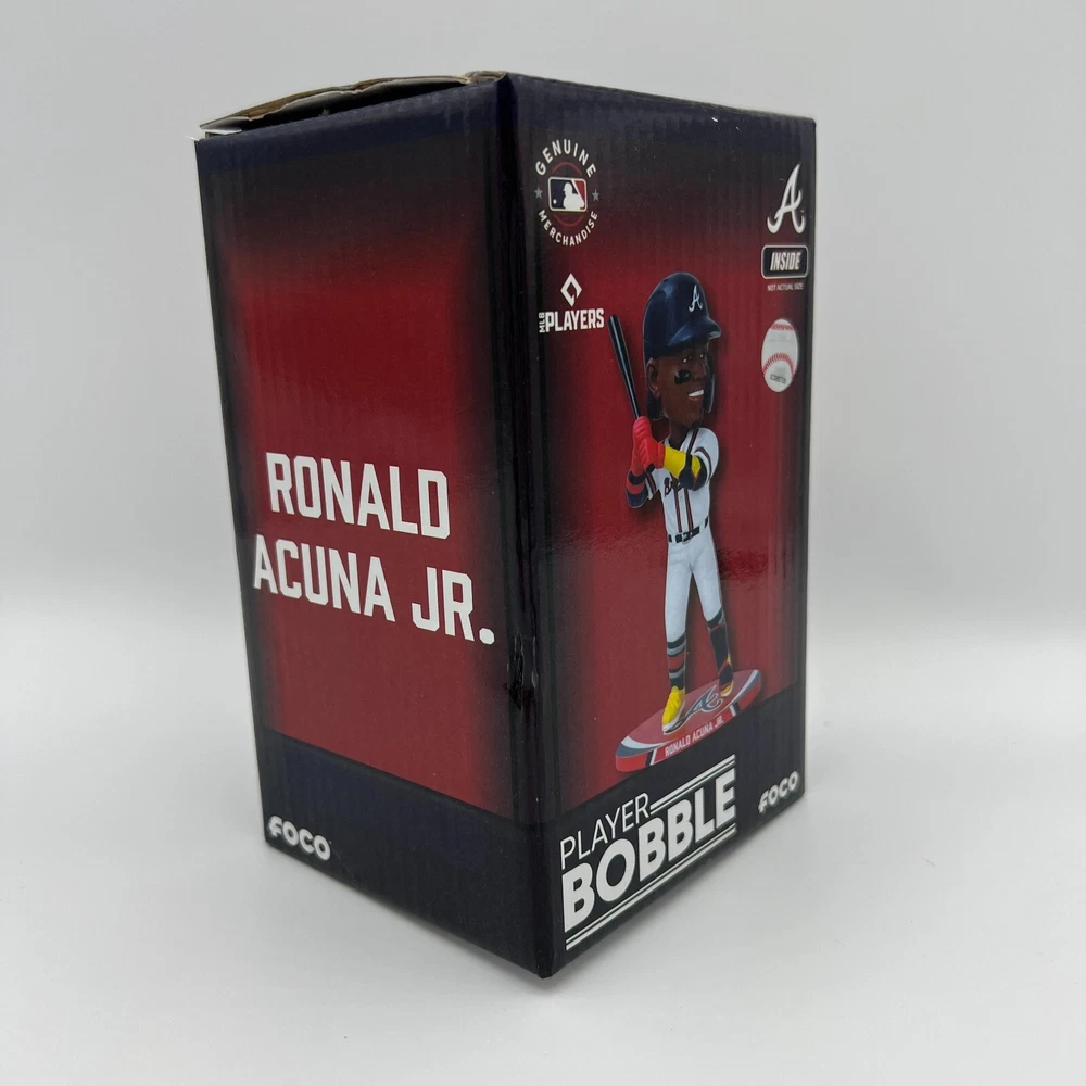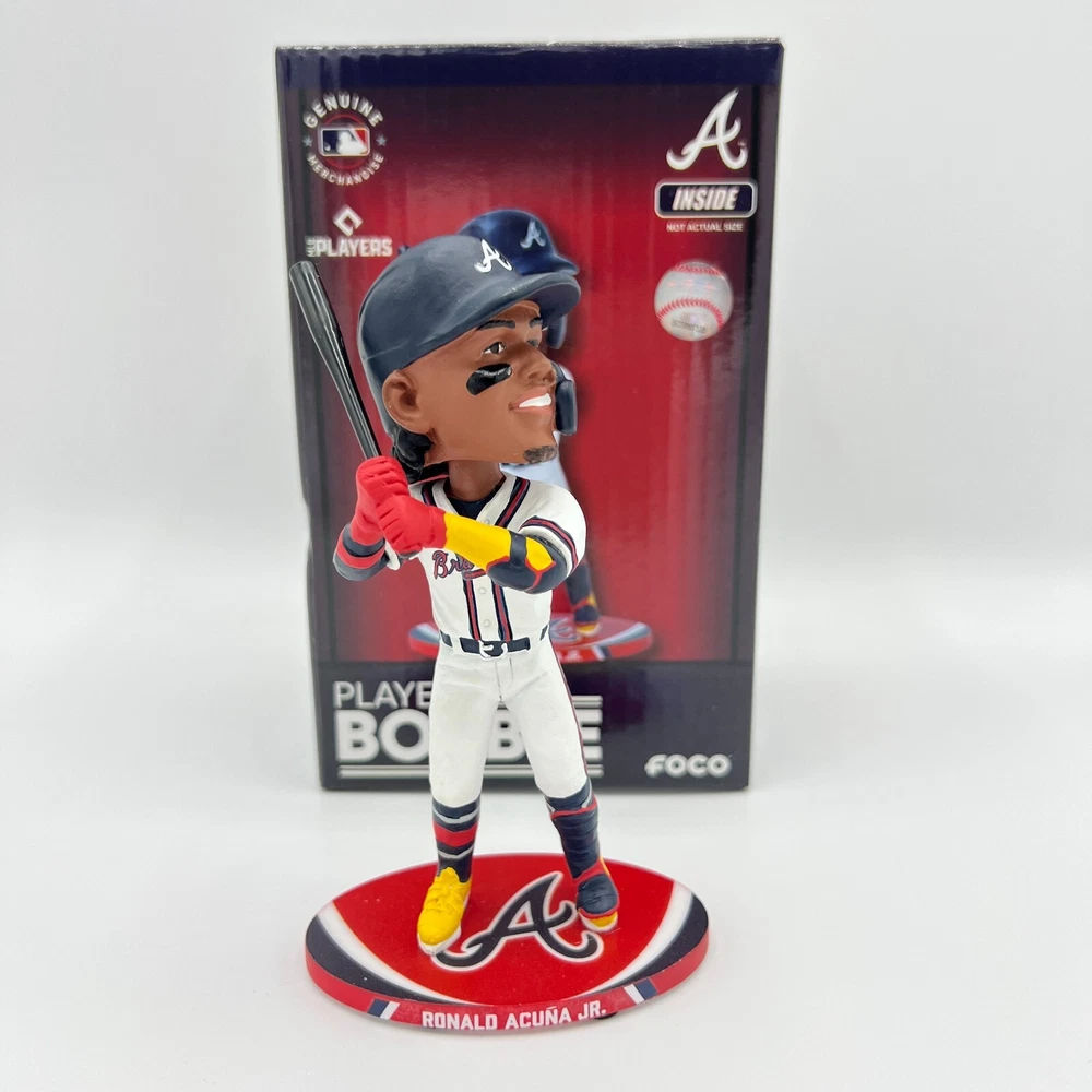 Brand: FOCO Team: Atlanta Braves Color: White Country/Region of Manufacture: Jersey Size: 5" Officially Licensed: Yes Sport: Baseball-MLB Product: Bobblehead UPC: 196816824050 Player: RONALD ACUNA JR gtin13: 196816824050