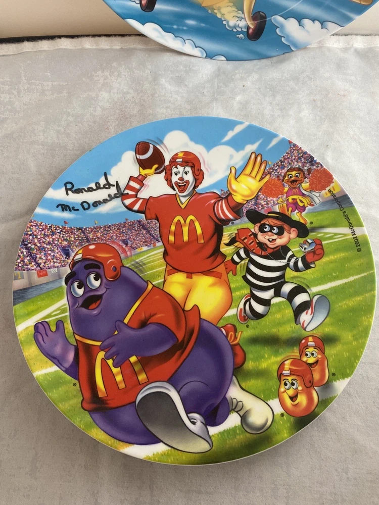 2/2002 Ronald McDonald Collectors Plates featuring the original signature from the official Ronald McDonald from Nebraska. He is retired now which make these plates even more valuable to your collection. These original plates were created in the United States and are a must-have for any collector of McDonald's memorabilia.