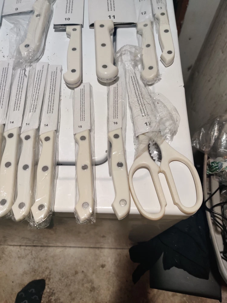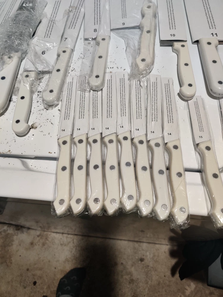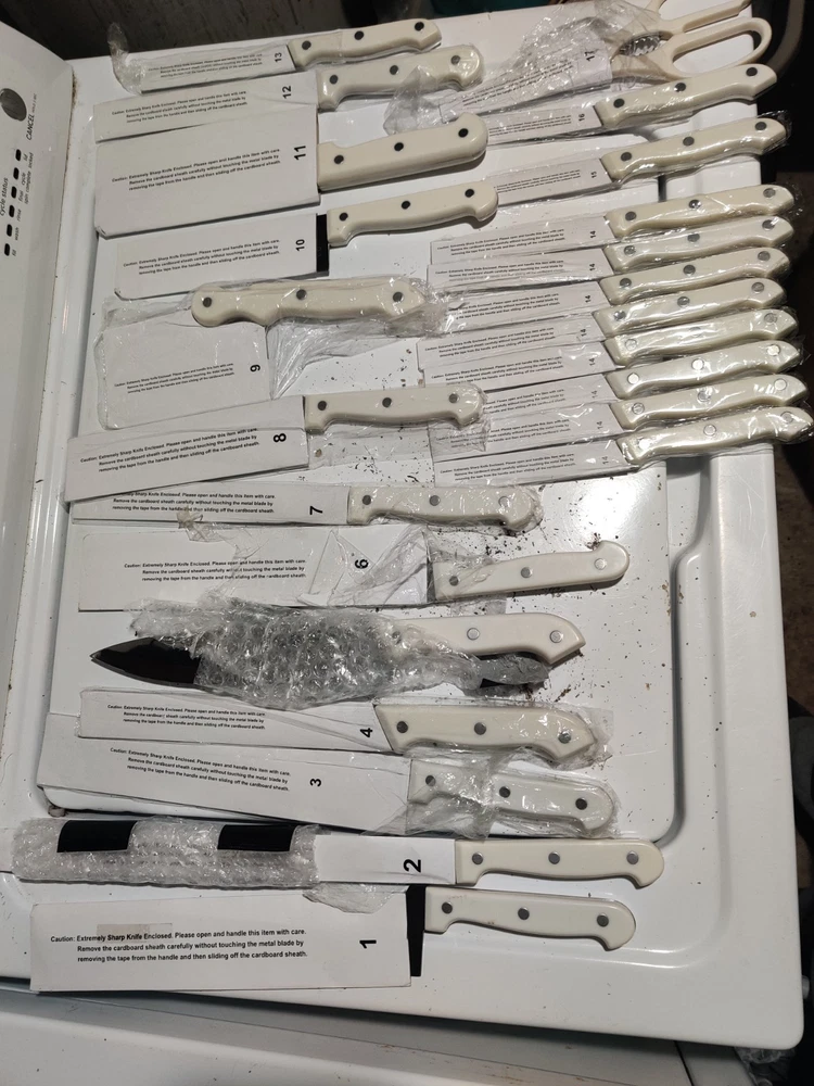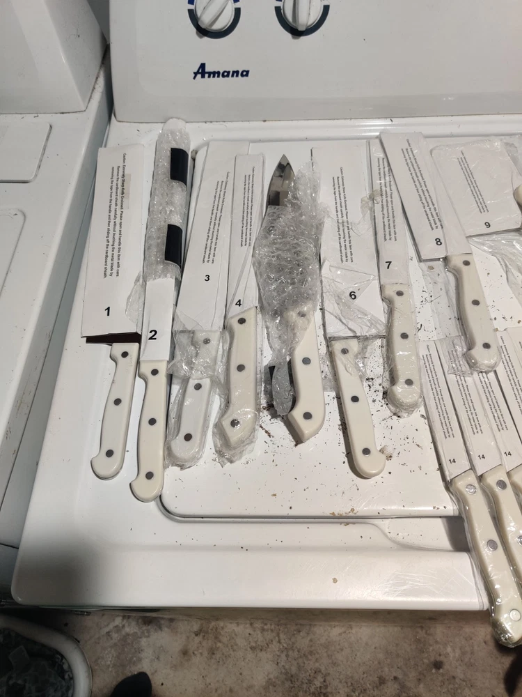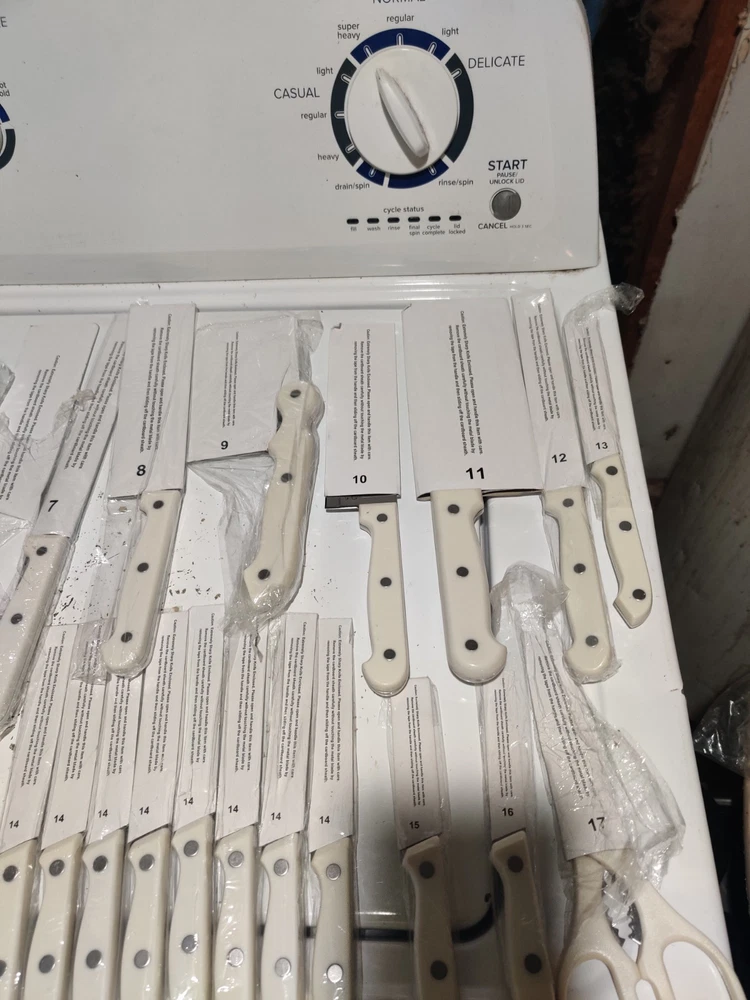 Features:Dishwasher Safe, Reusable, Easy CleanBundle Description:NoneMPN:Does Not ApplyUPC:Does not applyColor:WhiteModel:#3Material:Stainless SteelNumber of Items in Set:24Food Compatibility:MeatBrand:Ronco Showtime Six StarSet Includes:Fillet & Larding KnivesCountry/Region of Manufacture:Chinagtin13:Does not applyCustom Bundle:NoHandle Material:Stainless SteelBlade Edge:StraightBlade Length:variousType:Fillet & Larding Knives