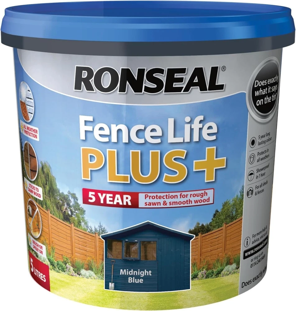 RONSEAL ONE COAT LIFE QUICK DRY GARDEN SHED FENCE PAINT PROTECTOR 5L ALL COLOURS