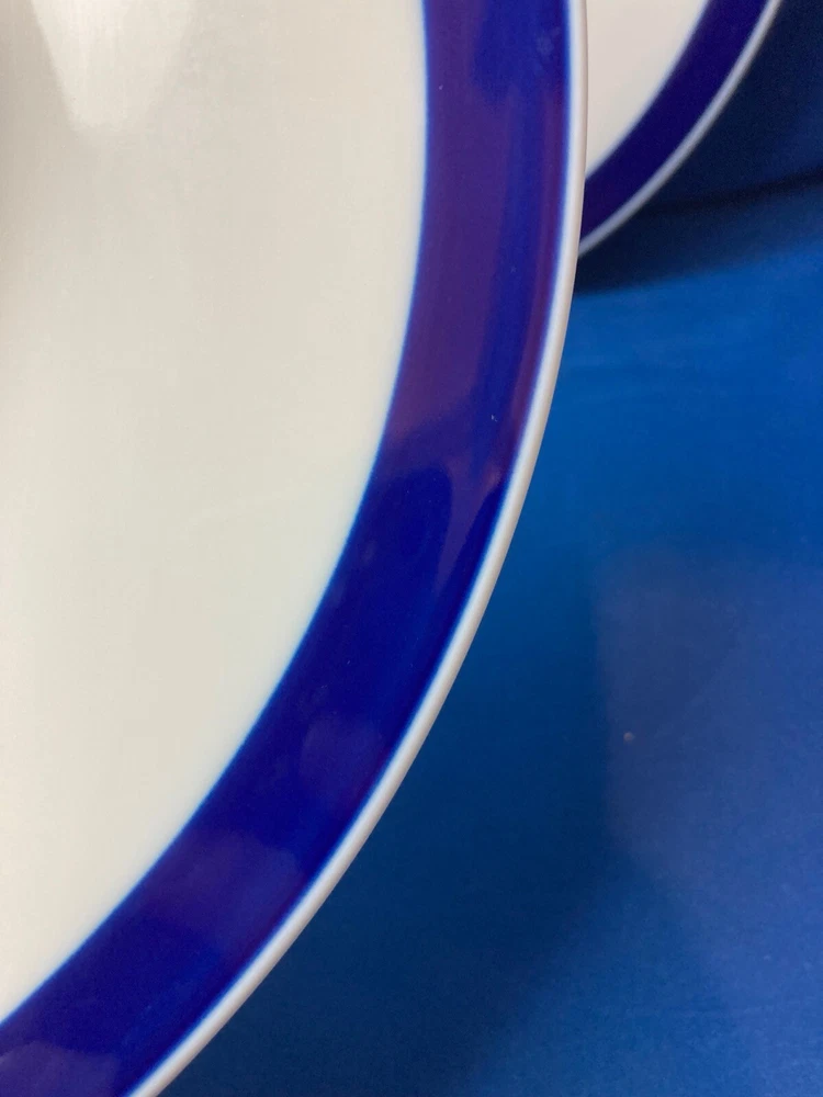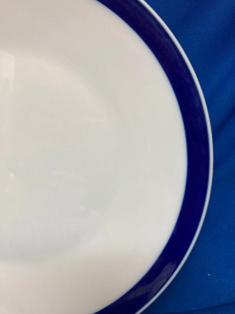 ROSENTHAL TERZO VINTAGE 2 DINNER PLATES 10.5'' BLUE BAND, GENTLY USED - GERMAN Elegant set of 2 dinner plates from ROSENTHAL in the pattern TERZO. VINTAGE pattern made between 1969-1977. White base with royal blue band around edges. Plates have a diameter of 10.5''. Gently used with light utensil marks present only upon close inspection. Both pieces are in great condition with no chips, cracks, or flakes. Made in Germany. The price shown is for a pair of 2 plates. This item is being sold in pairs of two. If you order a quantity of 1, you will recieve 2 plates. If you order a quantity of 2, you will receive 4 plates, and so on. Please ask questions before bidding or purchasing. Please be sure to visit my Ebay store for more fine china by some of the world's best makers! I also have fine crystal, sterling silver, silver plate and antique books. _gsrx_vers_1677 (GS 9.8.1 (1677))