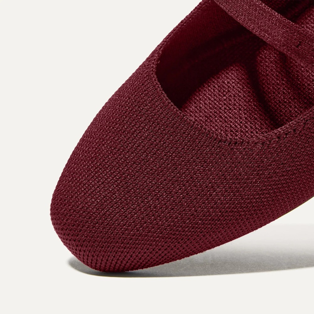 The Double Buckle Mary Jane in Cabernet Soft, flexible upper in deep burgundy . Features two slim, flexible straps with adjustable signature buckles. Comfortable insoles in deep burgundy and durable tan rubber outsoles. All of our styles are machine washable—so they last for the long haul. Slip out insoles. Toss insoles and shoes in the wash with cold water. Air dry. No heat, please. Wear again and again. Knit from Rothy’s signature thread, which is spun from plastic bottles. It took about 9 plastic bottles to knit this pair of shoes.