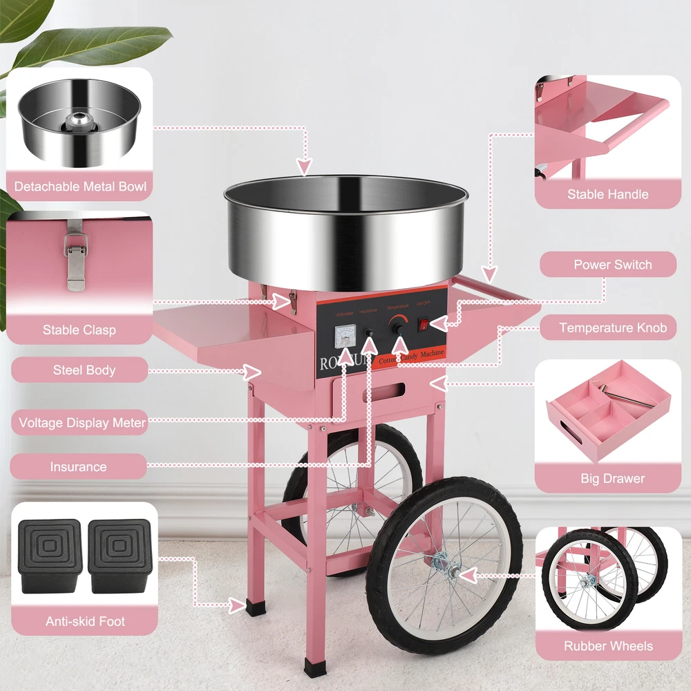listing template VISIT OUR STORE SIGH UP FOR EMAIL ROVSUN 20" Commercial Cotton Candy Machine Maker Cart Electric Candy Floss 950W Features: Safe & User-friendly Design: Made of high quality stainless steel, the commercial cotton candy machine is durable and corrosion-proof, which also ensures food security and safeguard your health. The aluminum candy outlet ensures heating evenly and prevents overheating. The built-in large capacity drawer provide extra storage space for cotton candy sticks or other tools. Besides, we provide a free sugar scoop, which makes sugar pouring easily High Efficiency: Equipped with 950W heating power and 30W motor power, our cotton candy makers only take a few minutes to heat up and produce up to 2-3 servings per minute. The fast spinning head can hold about 4oz. of sugar, which avoids repeated filling and makes process efficiently Easy Operation & Cleaning: Just turn on the power, adjust the temperature (338-482℉), warm up for 5-6 minutes, pour the sugar into the cap, then within minutes delicious cotton candies could be made. Locking clips minimize vibration in process and help to hold down the bowl. Adjustable temperature makes it suitable for different kinds of candies. The detachable pan makes it easy to clean Wide Applications: You could use flossing sugars, milk candy, sugar-free hard candy, fruit pieces or any hard candy you like to make delicious cotton candy in this hard candy cotton candy machine, perfect for commercial and home use in parties, carnivals, wedding receptions, festivals, birthday parties, sports events and so on Perfect Gift: This cotton candy maker machine is a good choice for family or friends as Christmas gifts, birthday gifts, etc. Specifications 1. Color: Pink 2. Heating Power: 950 Watts 3. Motor Power: 30 Watts 4. Temperature Range: 338-482℉ 5. Bowl Size: Φ20" x 6.5" 6. Bubble Size: Φ21" x 11.8" 7. Cart Size: 33" x 20"x 40" 8. Bowl Material: 304 Stainless Steel 9. Product Weight: 44 lb Package Includes: 1 x Cotton Candy Maker 1 x Carbon Motor Brush 1 x Sugar Scoop 1 x Extra Fuse 1 x Manual 1 x Installation Kit You might like this more>> Portable Princess Castle Play House Blue Large Kids Play Tent $23.79 Double Shoe Rack Closet Shelf Storage Organizer $19.49 Oil Painting Easel Sketch Box Portable Folding $57.49 FCH L-Shaped Corner Computer Desk Home Office Desk $109.99 10 Tier Durable Storage Organizer 30 Pair Shoe Tower $18.99 24 Slots PU Leather Wrist Watch Box Display Case Organizer $16.99 Shipping Policy 1. Ship from New Jersey by Standard Int'l Shipping, and only to VERIFIED PAYPAL ADDRESS . 2.International Buyers – Please Note: a. Import duties, taxes and charges are not included in the item price or shipping charges. These charges are the buyer’s responsibility. b. Please check with your country’s customs office to determine what these additional costs will be prior to bidding/buying. 3. Please check your shipping address carefully before checkout, it can't be changed if order completed. 4. All items will be shipped to buyer's ebay address. Before you pay, please make sure your address in ebay match the address you would like us to ship to. 5. Ship within 1 business day once payment completed. We do not ship on weekends or public holidays. 6. Item normally will arrive in 10-15 business days but sometimes goes to 25-30 business days for remote area. That is depends on the freight in different countries. Return Policies 1. Refunds given only if item DOA and cannot be replaced via PAYPAL . If so, Please contact us with 5 days since you receive the item and and return to us within 30 days from the delivery date for exchange or refund. 2. If you need return, please contact our customer service representative, let us know the detailed problem and send us some pictures for confirmation. Payment Payment should be sent within 8(EIGHT) days of auction closing. Feedback If you are dissatisfied for any reason, please do not be quick to leave negative/neutral feedback. We work hard to make sure EVERY CUSTOMER 100% SATISFIED and resolve any problem for you. Work Time Work Time: Monday to Saturday About Us | Newsletter| Feedback| Contact Us Copyright © 2021 City-green. All rights reserved. 无标题文档 ROVSUN 20" Commercial Cotton Candy Machine Maker Cart Electric Candy Floss 950W Features: Safe & User-friendly Design: Made of high quality stainless steel, the commercial cotton candy machine is durable and corrosion-proof, which also ensures food security and safeguard your health. The aluminum candy outlet ensures heating evenly and prevents overheating. The built-in large capacity drawer provide extra storage space for cotton candy sticks or other tools. Besides, we provide a free sugar scoop, which makes sugar pouring easily High Efficiency: Equipped with 950W heating power and 30W motor power, our cotton candy makers only take a few minutes to heat up and produce up to 2-3 servings per minute. The fast spinning head can hold about 4oz. of sugar, which avoids repeated filling and makes process efficiently Easy Operation & Cleaning: Just turn on the power, adjust the temperature (338-482℉), warm up for 5-6 minutes, pour the sugar into the cap, then within minutes delicious cotton candies could be made. Locking clips minimize vibration in process and help to hold down the bowl. Adjustable temperature makes it suitable for different kinds of candies. The detachable pan makes it easy to clean Wide Applications: You could use flossing sugars, milk candy, sugar-free hard candy, fruit pieces or any hard candy you like to make delicious cotton candy in this hard candy cotton candy machine, perfect for commercial and home use in parties, carnivals, wedding receptions, festivals, birthday parties, sports events and so on Perfect Gift: This cotton candy maker machine is a good choice for family or friends as Christmas gifts, birthday gifts, etc. Specifications 1. Color: Pink 2. Heating Power: 950 Watts 3. Motor Power: 30 Watt