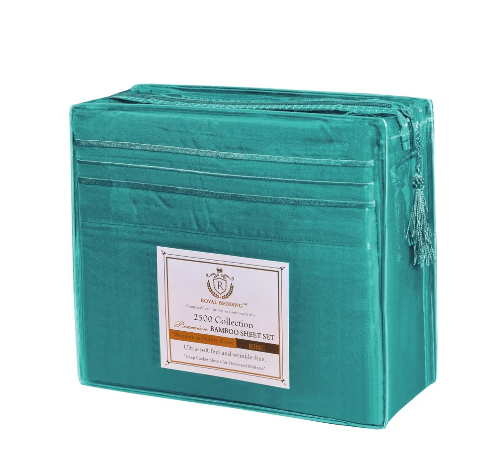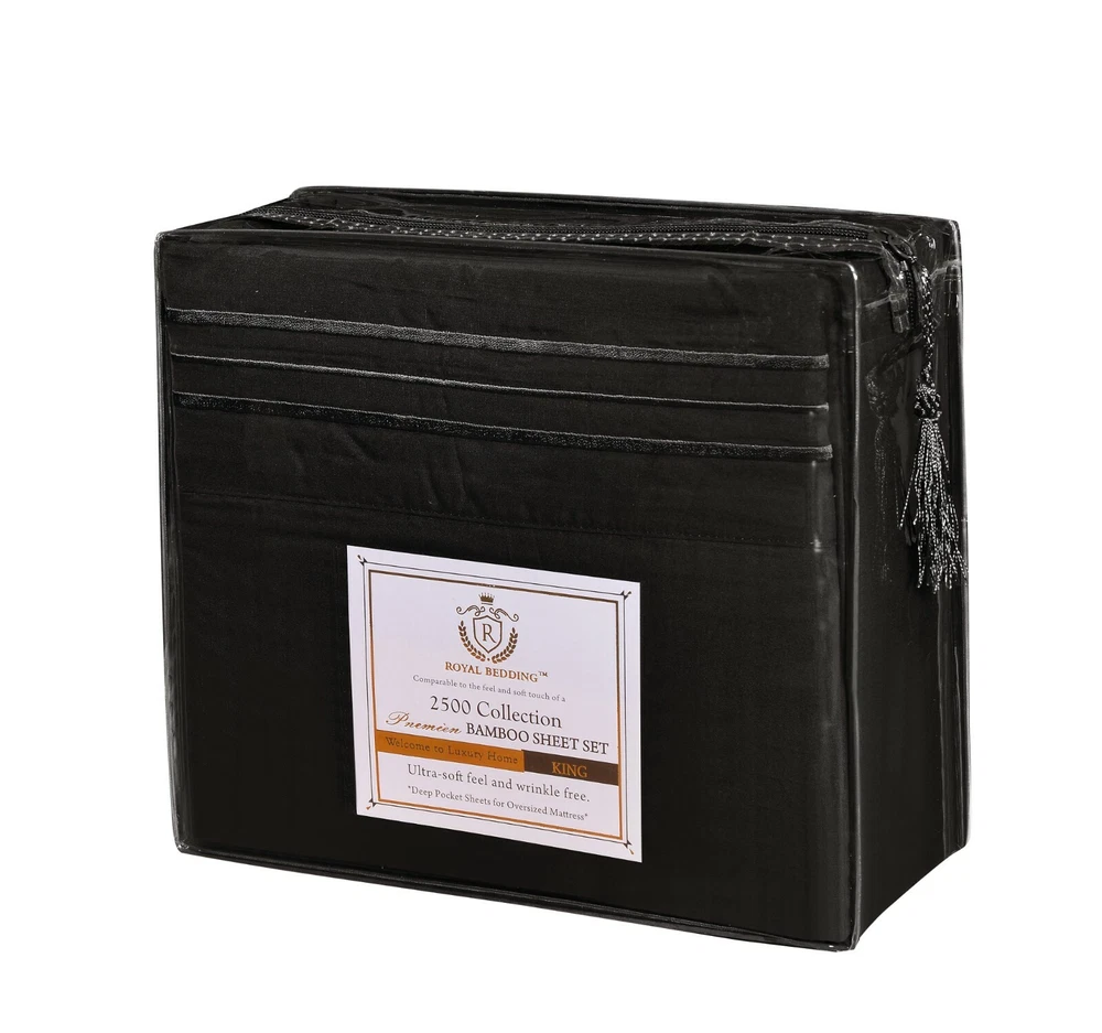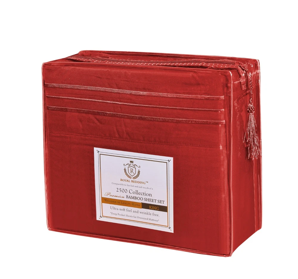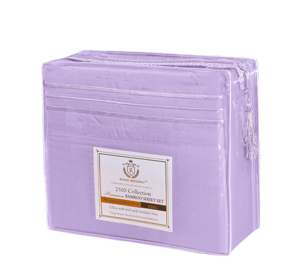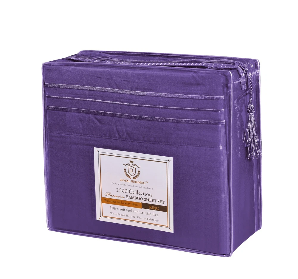 Royal Bedding Bamboo Collection Welcome to the Luxury! Our exclusive bedding will bring comfort and tranquility to your sleep. Sheet are made out of highest quality 100% double brushed, durable, high density threads, microfiber. Deep pockets with fully elasticized fitted sheet guarantee a snug fit for mattresses up to 16" deep. Easy care, wrinkle free, non-iron, fade resistant. Machine wash in cold with like colors. Dry on low heat. Sizes Available: · Twin XL: 66" X 102" Flat Sheet, 39" X 80" Fitted Sheet And One 20"X 30" Pillowcase. (3 Pc Set) · Full (Double): 81" X 96" Flat Sheet, 54" X 75" Fitted Sheet And Two 20" X 30" Pillowcases · Queen : 90" X 102" Flat Sheet, 60" X 80" Fitted Sheet And Two 20" X 30" Pillowcases. · King : 102" X 105" Flat Sheet, 78" X 80" Fitted Sheet And Two 20"X 40" Pillowcases · California King : 108" X 102" Flat Sheet, 72" X 84" Fitted Sheet And Two 20" X 40" Pillowcases Split King: 108" X 102" Flat Sheet, 39" X 80" 2 Fitted Sheets, 2 Pillowcases 20" X 40" (5Pc Set)