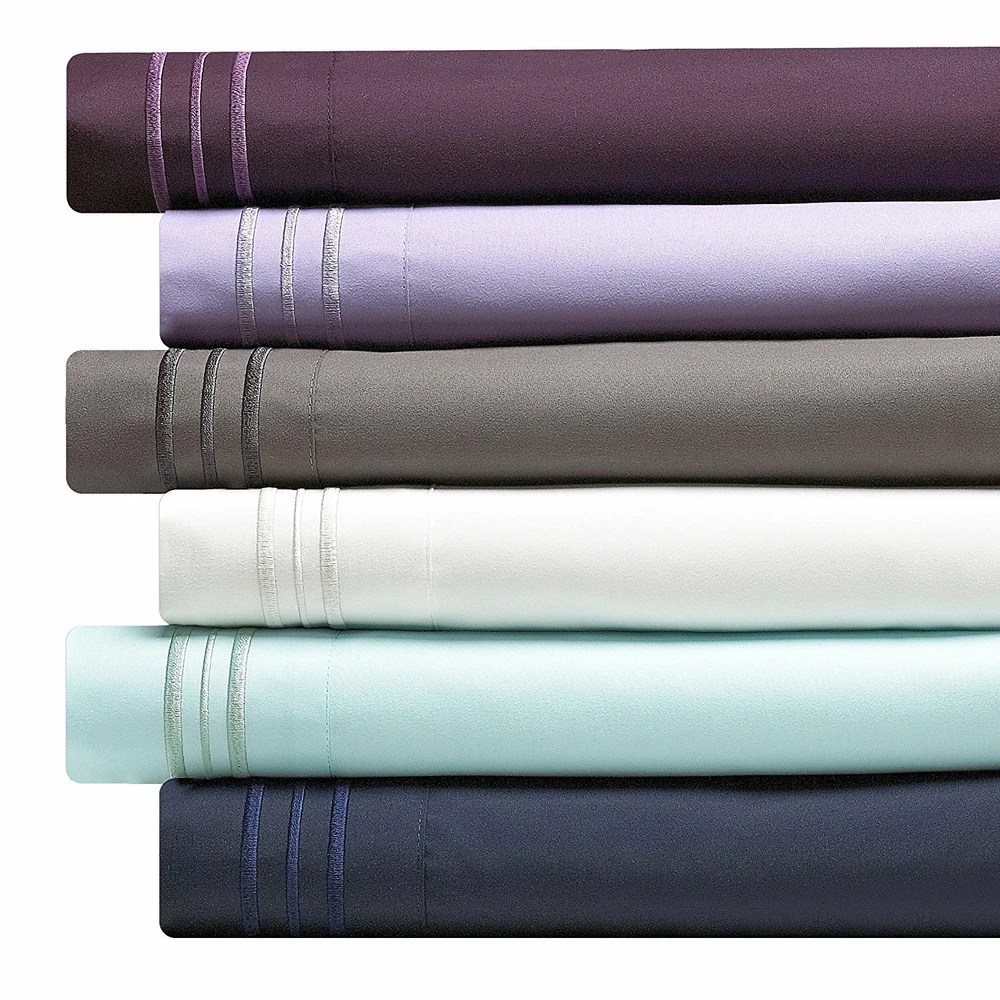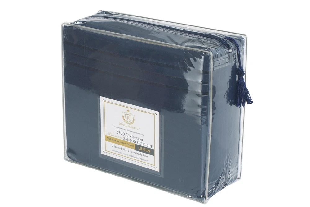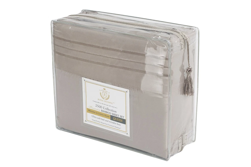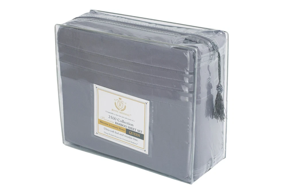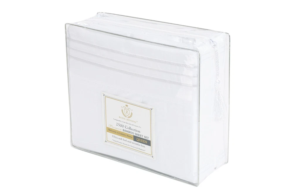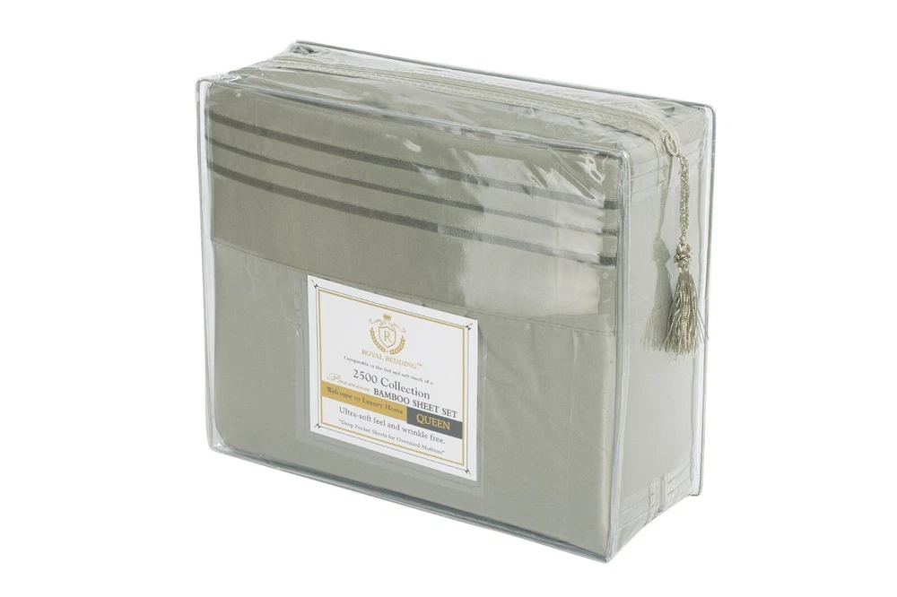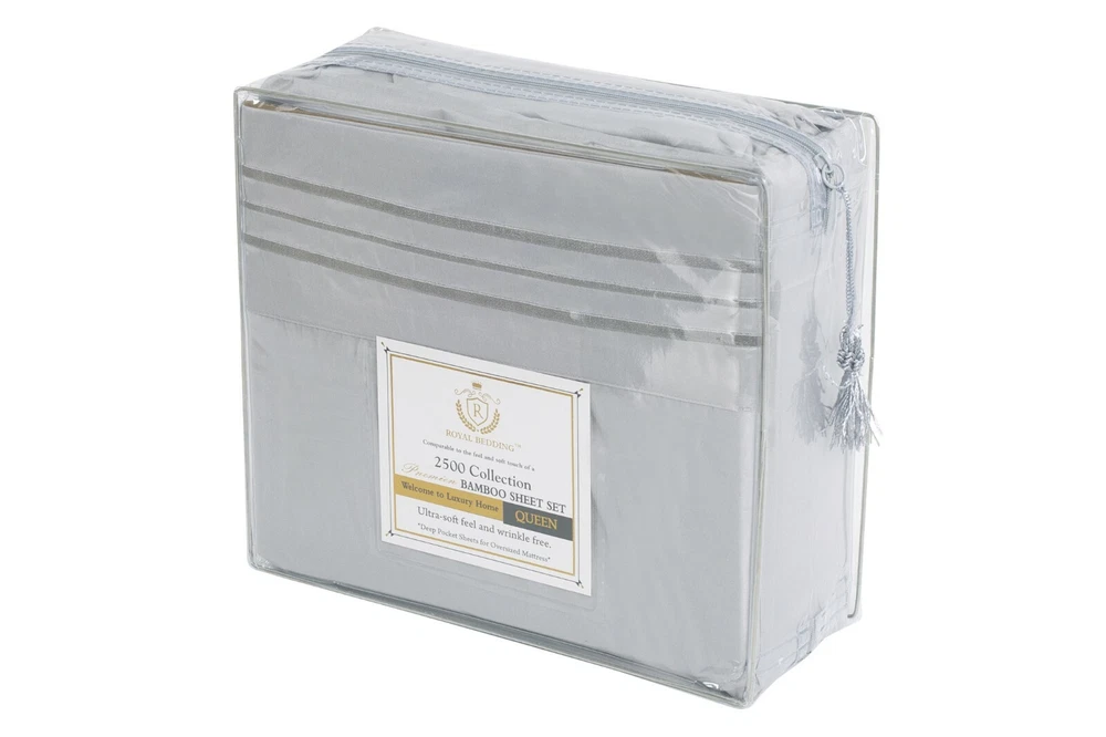 Royal Bedding Bamboo Collection Welcome to the Luxury! Our exclusive bedding will bring comfort and tranquility to your sleep. Sheet are made out of highest quality 100% double brushed, durable, high density threads, microfiber. Deep pockets with fully elasticized fitted sheet guarantee a snug fit for mattresses up to 16" deep. Easy care, wrinkle free, non-iron, fade resistant. Machine wash in cold with like colors. Dry on low heat. Sizes Available: · Twin XL: 66" X 102" Flat Sheet, 39" X 80" Fitted Sheet And One 20"X 30" Pillowcase. (3 Pc Set) · Full (Double): 81" X 96" Flat Sheet, 54" X 75" Fitted Sheet And Two 20" X 30" Pillowcases · Queen : 90" X 102" Flat Sheet, 60" X 80" Fitted Sheet And Two 20" X 30" Pillowcases. · King : 102" X 105" Flat Sheet, 78" X 80" Fitted Sheet And Two 20"X 40" Pillowcases · California King : 108" X 102" Flat Sheet, 72" X 84" Fitted Sheet And Two 20" X 40" Pillowcases Split King: 108" X 102" Flat Sheet, 39" X 80" 2 Fitted Sheets, 2 Pillowcases 20" X 40" (5Pc Set)