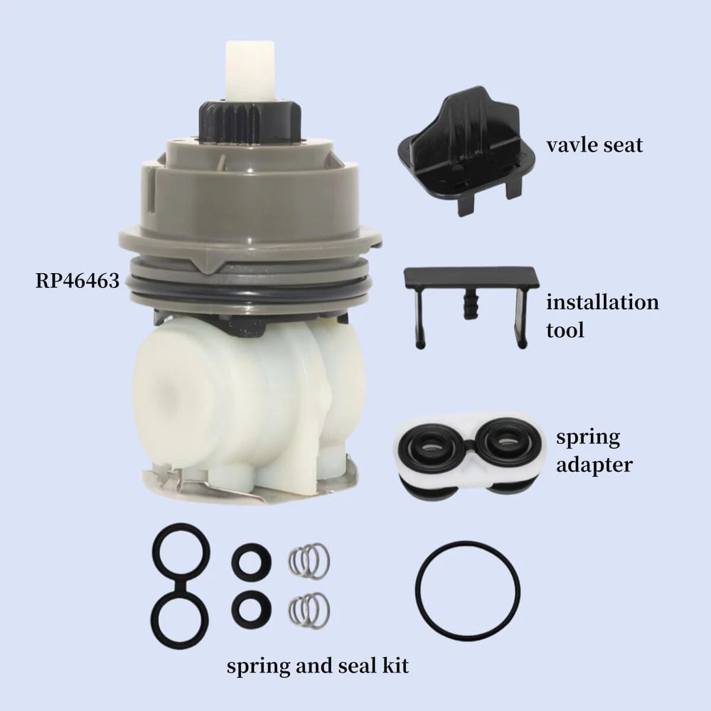 RP46463 Cartridge Replacement For Monitor 17 Series (2006-Present) RP46463 Pressure Balance Cartridge Assembly,Compatible with Monitor 17 and 18 Series Showers Trim (2006 - present),Including Seat and Spring Adapter Product Description RP46463 cartridge has a GREY cap and is for Monitor 17 dual-function shower faucets made after 2006 NOT for single-function Monitor 13/14 series faucet The screw on the old adapter design is not necessary. It could cause leakage and affect the smoothness CAUTION:If your shower was made before 2006, the right part should be RP32104(WHITE Cap) Cartridge for Monitor 17 series dual-function( temperature and volume control) shower faucet. NOT for single-function Monitor 13/14 series faucet. The screw on the old adapter design is not necessary. It could cause leakage and affect the smoothness. Olny Fit Monitor 17 AND 18 Series Showers ( 2006 - present ) Monitor dual-function pressure balance cartridge Dual-function volume and pressure balance temperature control including the RP46463 Cartridge,Valve Seat,and Spring Adapter Before Ordering: check the shower faucet and valve cartridge comparison photos to ensure the correct part number This RP46463 Cartridge Adaptor boasts dual-functional volume and pressure-balance temperature control for maximum comfort. Designed for application in tubs and showers, this cartridge adaptor is compatible with Monitor universal valve body assembly 17 series and 18 series trim. Payment Delivery details Returnning About us Contact us Payment Payment Methods & Sales Tax For full details on accepted payment methods and sales tax breakdowns, head to our Shipping & Payments tab—everything you need is clearly outlined there. Order Cancellations We process orders quickly to get your parts to you fast! If you need to cancel after payment is confirmed, please reach out within 24 hours . Our team will work to stop the order, but due to rapid processing, we can’t guarantee cancellation. We’ll keep you updated either way! Quick Note on Sales Tax Sales tax isn’t included in the item price or shipping costs. It’s automatically calculated and collected by eBay during checkout—no extra steps needed from you. Delivery details Shipping Details All orders ship within 48 business hours after payment clears—we move fast to get your parts on the way! Same-Day Shipping (US Warehouse): Most weekday orders placed by 1pm EST qualify for same-day shipping (just let us know if you need it urgent!). Delivery Address & Tracking: We only ship to your eBay-confirmed address (no exceptions). Tracking numbers are automatically uploaded to your eBay order once shipped—you’ll always know where your package is. Delivery Timelines: Typical delivery is 3-8 business days, depending on your location. If you haven’t received your order after 15 days, contact us right away—we’ll trace it and fix the issue quickly. Import Charges Import duties, taxes, and customs fees are NOT included in the item price or shipping cost. These are the buyer’s responsibility. Check with your local customs office for details before purchasing to avoid surprises! Returnning Return Policy We’re here to resolve issues quickly—save time and avoid hassle by contacting our customer service FIRST, whether you have questions before purchasing or need to address a return. Product Quality Issues : If the item has quality problems (even if used, or packaging is missing), contact us directly. We’ll process a full refund without requiring a return —no extra steps needed. Item Doesn’t Match Your Vehicle : If the part doesn’t fit, share your machine/model number with our team. We’ll help identify the correct part, and you can purchase it at a significant discount. No need to return the original item—keep it as a spare or gift it! Incorrect Purchase : Bought the wrong part? We suggest reselling it, gifting it, or letting us assist—we can help connect you with other US customers looking for this item. Just reach out, and we’ll guide you. About us Get in Touch Got questions? Reach out anytime—message us through eBay’s “Contact Seller” feature, or email us with your eBay ID and item number. We’ll respond promptly! Feedback Matters If you’re happy with your order, please leave positive feedback and 5-star DSRs—your support helps us keep delivering great service! We’ll automatically send you positive feedback right back—no extra steps needed. We’re Here to Fix Issues Our goal? 100% satisfaction. If something isn’t right, let us know first—we’ll move quickly to resolve it. Negative or neutral feedback rarely solves problems, but working together does. Drop us a line, and we’ll make it right. Contact us Got Questions? We’re here to help! Shoot us a message through eBay—we’ll respond promptly to get you answers fast. Customer Service Hours (Closed on holidays, Saturdays, and Sundays) PST (Pacific Standard Time): 5:00 PM – 2:00 AM PDT (Pacific Daylight Time): 6:00 PM – 3:00 AM