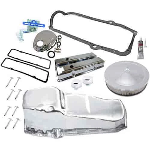Small Block Chevy Chrome Dress-Up KitIncludes:Steel Valve CoversTiming Chain CoverAir Cleaner SetOil PanPush-In BreathersTiming TabT-Bar Valve Cover NutsOil Pan GasketValve Cover GasketsDyna-Black RTV Kit Includes:RPC Chrome Steel Valve Covers 707-R9216RPC Steel Timing Chain Cover 707-R4934RPC Round Muscle Car Style Top Air Cleaner Set 707-R2195RPC Chrome Plated Steel Stock Oil Pan 707-R9005(2) RPC Steel Push-In Breathers RPC R9216K Small Block Chevy Chrome Dress-Up Kit Includes: Steel Valve Covers Ti Small Block Chevy Chrome Dress-Up Kit Includes: Steel Valve Covers Timing Chain Cover Air Cleaner Set Oil Pan Push-In Breathers Timing Tab T-Bar Valve Cover Nuts Oil Pan Gasket Valve Cover Gaskets Dyna-Black RTV Kit Includes: RPC Chrome Steel Valve Covers 707-R9216 RPC Steel Timing Chain Cover 707-R4934 RPC Round Muscle Car Style Top Air Cleaner Set 707-R2195 RPC Chrome Plated Steel Stock Oil Pan 707-R9005 (2) RPC Steel Push-In Breathers 707-R4870 RPC Steel Timing Tab 707-R4960 (8) RPC T-Bar Valve Cover Nuts 707-R9120 JEGS Oil Pan Gasket 555-210092 JEGS Valve Cover Gaskets 555-210071 JEGS Dyna-Black RTV 555-28035 From the iconic mail order catalog to a fully-stocked digital commerce experience, we have built a preferred destination for every gear-head, professional racer, weekend warrior and restoration nut who wants to take their vehicle to the next level. Around here, we don't just sell parts - we rely on them when driving our own cars around racetracks, dirt trails, and interstates across the country. Parts may be our business - but grease, fuel, exhaust, power, and speed are what we live for. Today, more than 350 people are employed by JEGS and the business draws in hundreds of thousands of customers each year. Yet, we maintain the culture stared by Jeg Coughlin from the very beginning: a family-run performance shop that preserves a trusted relationship with each and every customer. From the iconic mail order catalog to a fully-stocked digital commerce experience, we have built a preferred destination for every gear-head, professional racer, weekend warrior and restoration nut who wants to take their vehicle to the next level. Around here, we don't just sell parts - we rely on them when driving our own cars around racetracks, dirt trails, and interstates across the country. Parts may be our business - but grease, fuel, exhaust, power, and speed are what we live for. Today, more than 350 people are employed by JEGS and the business draws in hundreds of thousands of customers each year. Yet, we maintain the culture stared by Jeg Coughlin from the very beginning: a family-run performance shop that preserves a trusted relationship with each and every customer. From the iconic mail order catalog to a fully-stocked digital commerce experience, we have built a preferred destination for every gear-head, professional racer, weekend warrior and restoration nut who wants to take their vehicle to the next level. Around here, we don't just sell parts - we rely on them when driving our own cars around racetracks, dirt trails, and interstates across the country. Parts may be our business - but grease, fuel, exhaust, power, and speed are what we live for. Today, more than 350 people are employed by JEGS and the business draws in hundreds of thousands of customers each year. Yet, we maintain the culture stared by Jeg Coughlin from the very beginning: a family-run performance shop that preserves a trusted relationship with each and every customer. From the iconic mail order catalog to a fully-stocked digital commerce experience, we have built a preferred destination for every gear-head, professional racer, weekend warrior and restoration nut who wants to take their vehicle to the next level. Around here, we don't just sell parts - we rely on them when driving our own cars around racetracks, dirt trails, and interstates across the country. Parts may be our business - but grease, fuel, exhaust, power, and speed are what we live for. Today, more than 350 people are employed by JEGS and the business draws in hundreds of thousands of customers each year. Yet, we maintain the culture stared by Jeg Coughlin from the very beginning: a family-run performance shop that preserves a trusted relationship with each and every customer. From the iconic mail order catalog to a fully-stocked digital commerce experience, we have built a preferred destination for every gear-head, professional racer, weekend warrior and restoration nut who wants to take their vehicle to the next level. Around here, we don't just sell parts - we rely on them when driving our own cars around racetracks, dirt trails, and interstates across the country. Parts may be our business - but grease, fuel, exhaust, power, and speed are what we live for. Today, more than 350 people are employed by JEGS and the business draws in hundreds of thousands of customers each year. Yet, we maintain the culture stared by Jeg Coughlin from the very beginning: a family-run performance shop that preserves a trusted relationship with each and every customer. From the iconic mail order catalog to a fully-stocked digital commerce experience, we have built a preferred destination for every gear-head, professional racer, weekend warrior and restoration nut who wants to take their vehicle to the next level. Around here, we don't just sell parts - we rely on them when driving our own cars around racetracks, dirt trails, and interstates across the country. Parts may be our business - but grease, fuel, exhaust, power, and speed are what we live for. Today, more than 350 people are employed by JEGS and the business draws in hundreds of thousands of customers each year. Yet, we maintain the culture stared by Jeg Coughlin from the very beginning: a family-run performance shop that preserves a trusted relationship with each and every customer. From the iconic mail order catalog to a fully-stocked digital commerce experience, we have built a preferred destination for every gear-he