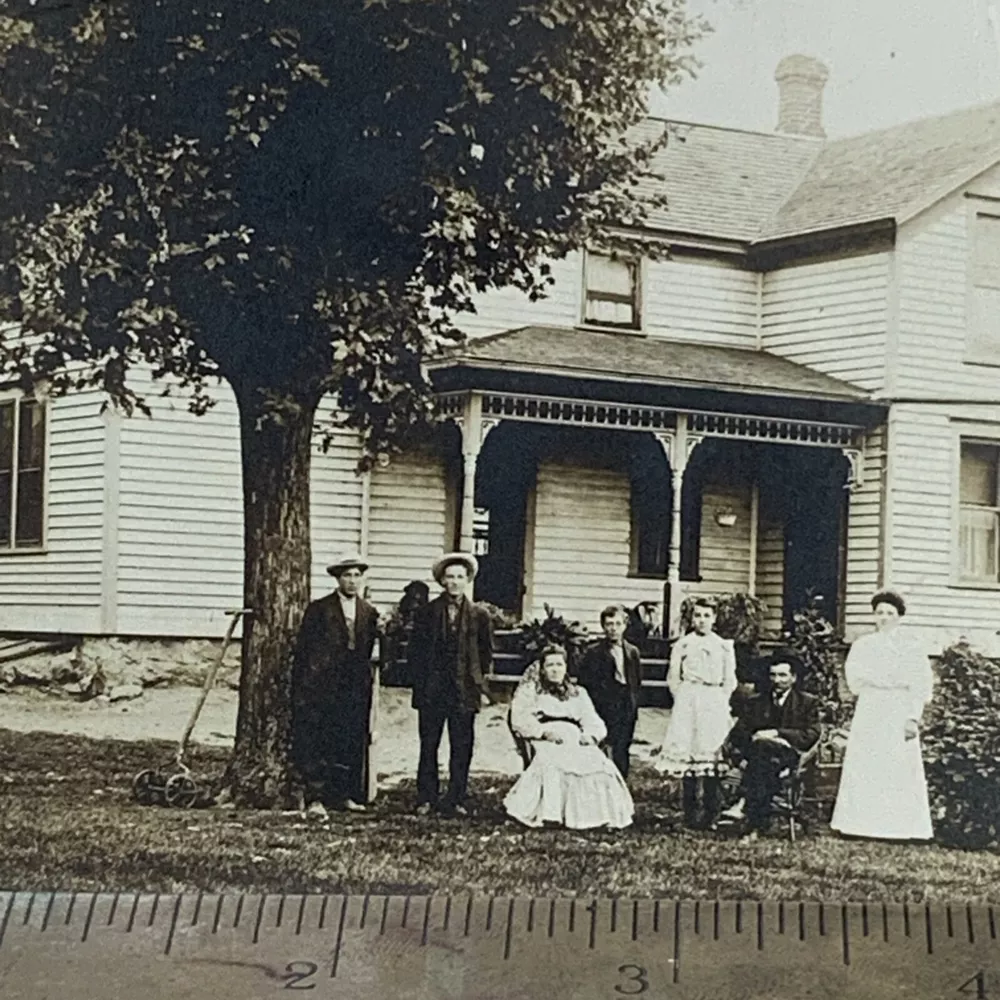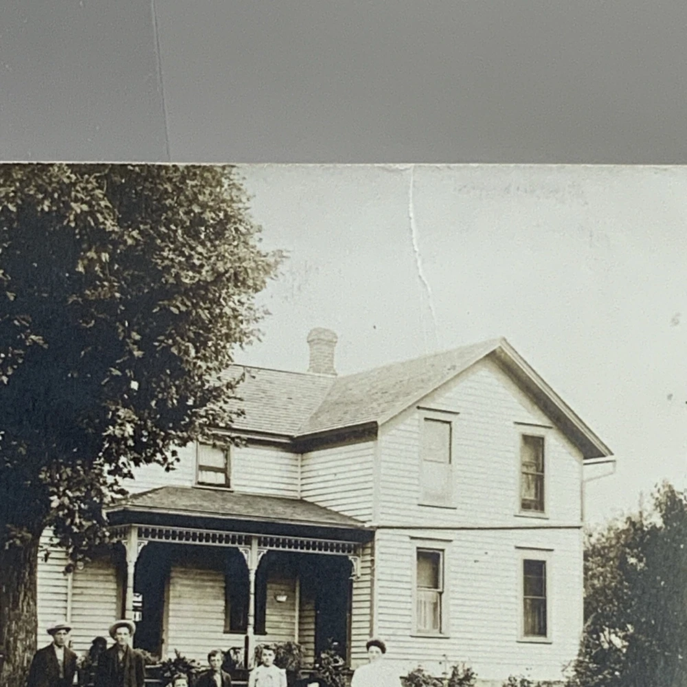 RPPC Postcard Of A Family Sitting Out In Front Of A Great Looking Farmhouse Good looking family. Slight crease in this card.