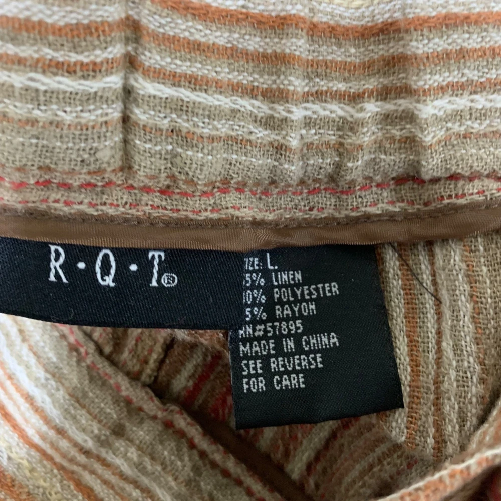 RQT Women’s Linen Blend Wide Leg Tie Waist Striped Pants - Size Large Great preowned condition! Zip fly with hook and latch closure Attached tie around waist Internal button on waist Wide legs Half-waist: 17" Inseam: 29" Length: 41" Rise: 12" Measurements are lying flat, and estimates only. 1P25 24-5498 15 oz Tags: retro, lightweight, striped, casual