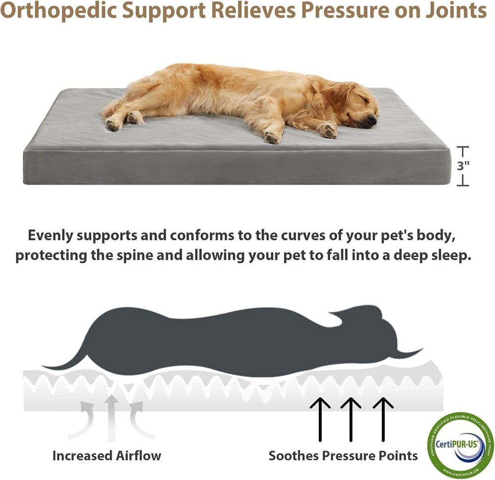 Indestructible Dog Beds for Large Dogs, Chew Proof Dogs Bed with Or... Indestructible Dog Bed: Durable heavy-duty dog bed designed for dogs with aggressive chewers, made of high-density foam with a cover made of 3 layers of military-grade fabric laminated together,and chew resistant dog bed is designed with double stitching and full-body reinforcement for protection against tearing and daily wear and tear Washable Dog Bed: The cover of the chew proof dog bed is completely removable for easy cleaning. Whether it's muddy paw prints from your dog's outdoor play or an accident, simply throw the cover of the dog crate bed washable into the washing machine for more cosy moments for you and your dog Orthopedic Dog Beds for Large Dogs: The memory foam dog bed is made of highly resilient thick foam that effectively distributes pressure to provide optimal support for your dog while protecting his hips, elbows, and spine from excessive strain. Whether your dog chooses to curl up or stretch out, the durable dog bed allow your dog to rest comfortably and wake up with energy Waterproof Dog Bed with Hidden Zipper: The outdoor pet bed waterproof lining effectively blocks liquid, keep the high-density foam from accidents and extends the life of the water proof dog bed. In addition, the hidden zip design not only enhances the appearance of the tough dog bed, but also prevents curious dogs from chewing on it well, providing your pet with a safer thick dog bed Large Dog Bed: 36 x 27 x 3 inch large orthopedic dog bed is perfect for medium and large breeds weighing less than 60 pounds. The heavy duty dog bed is designed to provide plenty of room for stretching and resting comfortably More comfortable than chew-proof dog beds, More chew-resistant than regular dog beds, give your beloved companion the comfort and durability they truly deserve. The ultimate solution for happy dogs and happy owners!