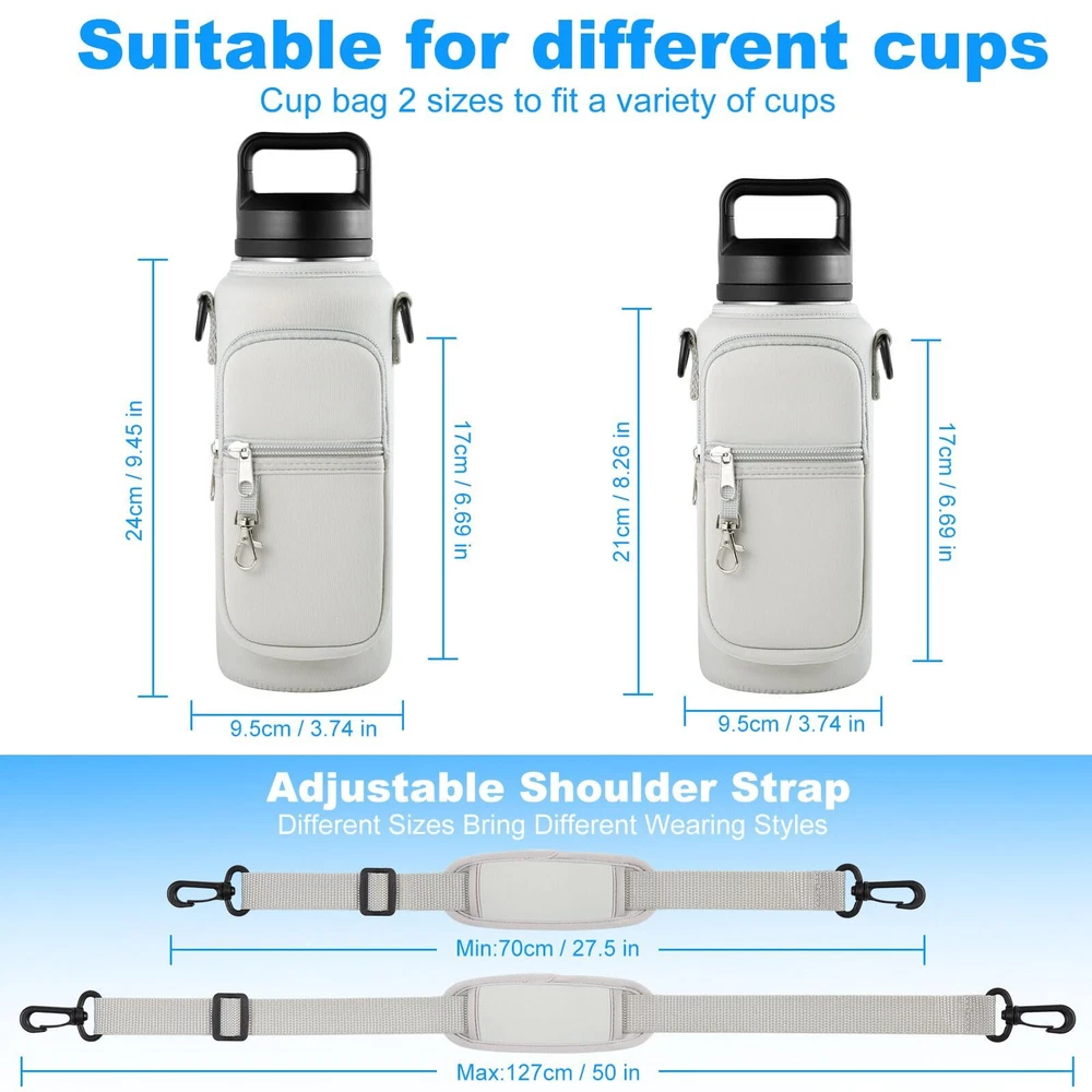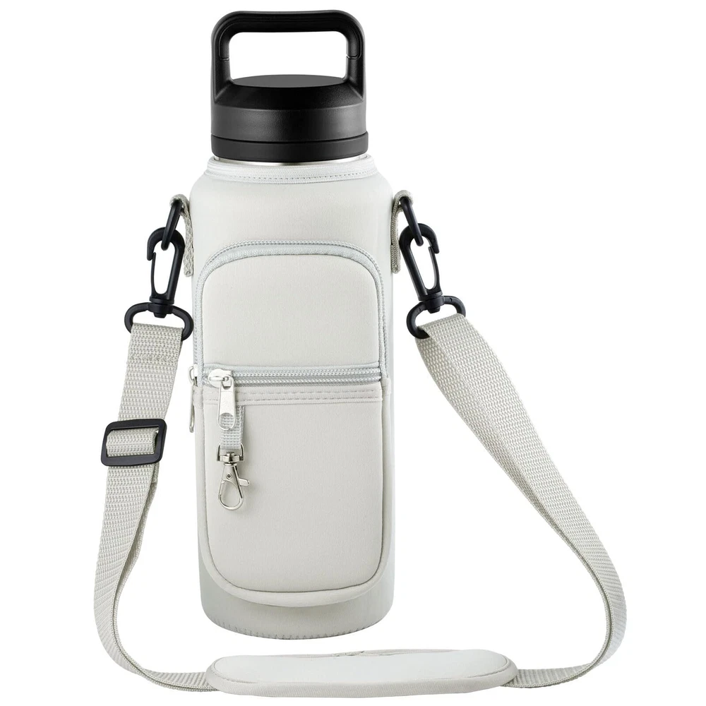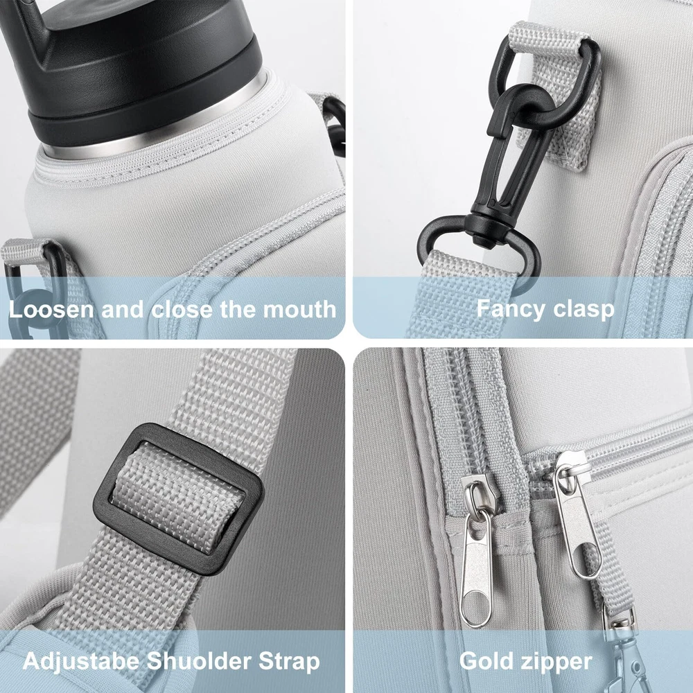 đăDurable Constructionă: Made from high-quality, water-resistant fabric, the holder ensures that your bottles are well-protected from scratches and exposure to moisture. This resilient material withstands daily use, outdoor adventures, and potential weather conditions, preserving the integrity of both the holder and the bottles inside. đăUniversal Compatibilityă: With dimensions of 4" x 5" x 12", this water bottle carrier comfortably accommodates a wide variety of bottles, including vacuum bottles, sports bottles, and feeding bottles from different brands. It is specifically designed to fit bottles ranging in size from 32oz to 40oz, ensuring compatibility with many popular models on the market. đăTemperature Regulationă: The insulated interior efficiently maintains the ideal temperature of your beverages, whether hot or cold. This feature allows you to enjoy perfectly tempered drinks throughout the day, regardless of external conditions, thanks to effective heat retention properties. đăOrganized compartmentsă: In addition to the primary bottle compartment, the carrier boasts multiple pockets for convenient storage of your essentials.Two zippered compartments, complete with a key leash, provide secure storage for your smartphone, keys, and other small valuables. đăVersatile Usageă: This water bottle carrier is suitable for adults engaging in various activities, such as work, walking, hiking, camping, beach trips, and other outdoor pursuits. Its adaptable design, combined with its durability and functionality, makes it a practical choice for individuals with active lifestyles or those who value convenience on the go.