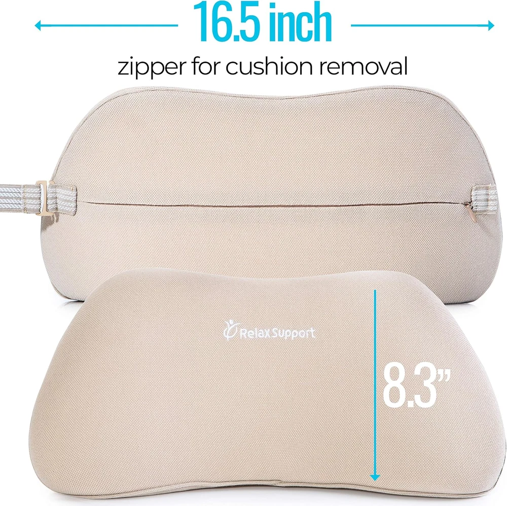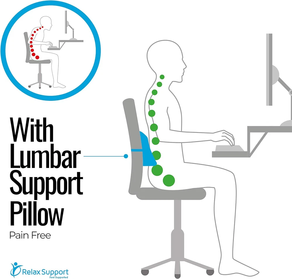 50% Cotton ๐ Struggling with uncomfortable seating during long periods? Our lumbar support pillow offers the perfect solution for enhanced comfort and pain relief. ๐ ACTUAL ORTHOPAEDIC RELIEF - office chair cushion with unique convex shape promotes superior support to ONLY the parts of your back a chair cushion should. ๐ UNIQUE DESIGN: Bid farewell to generic back support! Our pillow boasts a patented, ergonomically engineered design that cradles your back for exceptional support and comfort, setting it apart from the competition. ๐ MEMORY FOAM COMFORT: Crafted with premium memory foam, our pillow effectively absorbs pressure points, delivering instant relief from discomfort and pain. Enjoy the sensation of perfect support and gentle body contouring. ๐ INSPIRED BY NASA G-FORCE - Who invested billions into their lumbar support pillow memory foam, ensuring astronauts maintain the physical strength and pain free bodies only back support for chair foam like this delivers. ๐ DURABLLITY: Our pillow stands out with its luxurious, long-lasting fabric. Not only is it exceptionally comfortable, but it's also highly breathable and durable. Say goodbye to wear and tear โ our pillow is built to last. Plus, it's removable and washable for added hygiene. ๐ VERSATILE COMFORT: Whether at your office desk, on a long drive, or relaxing at home, our pillow is your go-to companion. Compatible with various chairs and seats, you can take its comfort wherever you go. Note: For car use, a minor seat adjustment may be needed due to its unique thickness โ a small price for incredible support. ๐ DO NOT SETTLE FOR DISCOMORT: Elevate your sitting experience with our lumbar support pillow and say goodbye to pain and discomfort. Product Description WHY THIS PILLOW? RS1 WORKS BECAUSE of UNIQUE ARC CONTOUR SPECIAL PATENTED lateral convex shape that is not only SUPER COMFORTABLE but also creates the GENTLE SUPPORT you need. NASA DEVELOPED TECHNOLOGY: EVER WONDER WHY memory foam was created? It was developed to REDUCE THE STRESS on the bodies of ASTRONAUTS CAUSED by the high G-force they were exposed to during take-off. THE SECRET OF memory foam is that itsโ structure matches the pressure against it and then slowly springs back to its original shape. One of memory foamโs unique characteristic is its temperature-sensitivity, which is what allows it to offer the custom-contouring the material is so famous for. A product that will perform differently when subjected to body heat will also be affected by the temperature of the room where it is used. When memory foam pillows are kept in a room with higher temperatures, the materialโs physical structure will exhibit reduced viscosity. Certainly, memory foam will remain a solid regardless of the temperature, but its flexibility is increased with temperature. Conversely, at cooler temperatures, memory foam exhibits more rigidity and inflexibility. At very cool temperatures, memory foam can actually feel hard initially, until the material is able to warm. FEEL BETTER AND BETTER โ THE MORE YOU USE our LUMBAR PILLOW the FASTER YOUR BACK CAN HEAL and get back to feeling relaxed and ready to take on your day. Our top quality lightweight cotton cover allows air to circulate through the pillow to prevent overheating. And donโt worry if the pillow gets dirty - weโve got you covered! Simply slip the removable cover off the pillow and throw it in the washing machine. DONโT JUST ENDURE YOUR DISCOMFORT. DISPEL YOUR SORENESS AND ACHINESS BY RELIEVING YOUR LOWER BACK PAIN: LONG workdays at the office or long hours in the car can be a killer for your back and YOU HAVE ENOUGH TO WORRY ABOUT without adding back pain to the mix! With the RELAXSUPPORT RS1 PILLOW , you can finally GET THROUGH YOUR DAY IN COMFORT instead of back pain.
