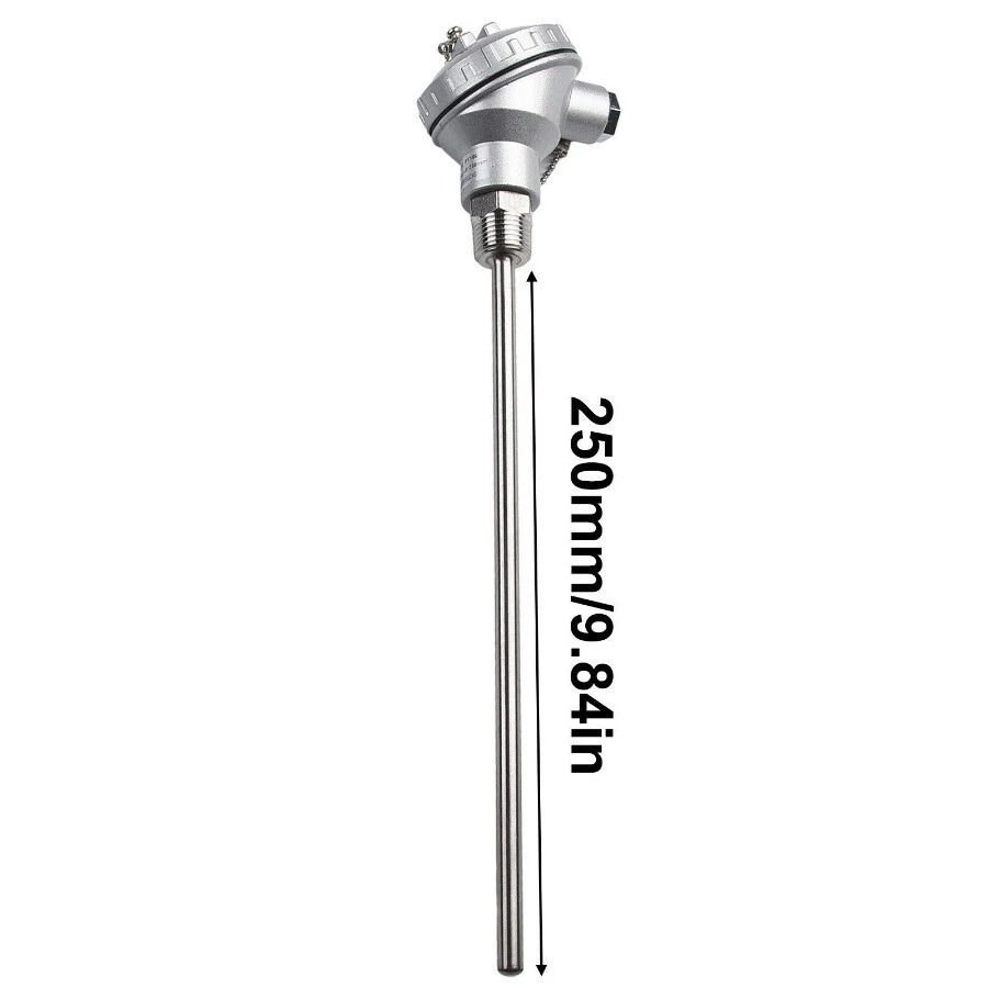 RTD PT100 Temperature Sensor Probe 1/2\" NPT Thread Thermocouple Terminal-Head This is 3 core specification, need 2 core please contact customer service Features: Brand new and high quality Made of high-quality materials, durable The available thread type is 1/2''. Simple structure and easy installation. Compatible with all temperature controllers. Exquisite craftsmanship, high performance and high efficiency. Made of stainless steel, rust-proof, anti-corrosion and durable. It has a wide measurement range and can measure temperatures from -200 to 420 degrees. Specifications: Model: PT100 Pipe length: 50mm, 100mm, 150mm, 200mm, 250mm, 300mm, 400mm (optional) Material: 304 stainless steel Color: Silver Temperature range: -200~420°C Pipe diameter: 6 mm Thread type: PT1/2'' Package Included: 1 * RTD (resistance temperature detection) with PT100 temperature sensor head 1 * Thread PT1/2'' 1 * Protective tube NOTE: 1.Your valid phone number is very necessary for the shipping, otherwise we can't guarantee that the package would safely arrives. 2. Any Customs tax applied to this package should be covered by buyers. 3.As has been stated on the eBay item description, Import duties, taxes and charges are not included in the item price and shipping charges.These charges be at the buyer responsibility. meanwhile the customs tax depend on the buyer local customs office.