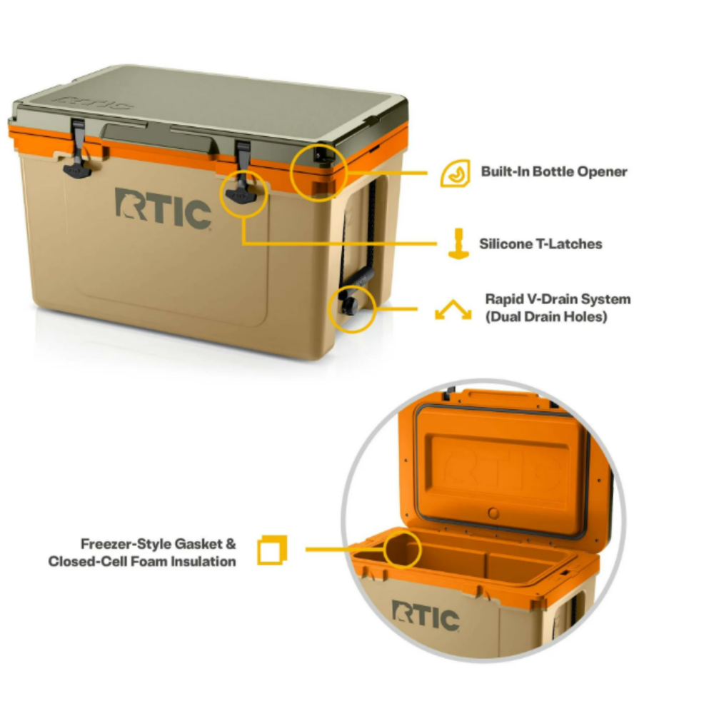 SHIPPING & CUSTOMER SERVICE INFORMATION 📦 ✅ We ship within 3–10 business days from the USA. ✅ Free Shipping – Free Returns – Money Back Guarantee ✅ No extra fees – the price you see is the final price! 🚫 We do not ship to warehouse addresses or PO boxes, as this may result in lost packages. Please provide a valid residential or business address. 🛑 If you experience any issues with your order, please contact us directly via eBay message . ⚠ ️ Do not open a dispute — we are unable to assist once a case is opened. Direct communication helps us resolve your issue faster and more effectively. 💬 If you see unexpected fees at checkout, it could be related to your location or display settings. But rest assured: we never charge extra — everything is included in the listed price. Thank you for shopping with us! Feel free to reach out anytime if you have questions. RTIC 52 QT Ultra-Light Hard-Sided Ice Chest Cooler, Fits 76 Cans, Trailblazer About this item Product details RTIC's 52 QT Ultra-Light Cooler is built light and strong for the long haul. Made with RTIC's unique Ultra-Light design, this injection-molded cooler is 30% lighter than rotomolded coolers with similar capacity. With up to 3"" of closed-cell foam insulation this cooler keeps contents cold for up to 7 days when following RTIC's cooling tips. This 52 quart coolers holds up to 76 cans. Easy to carry with marine-grade rope handles. Non-skid rubber feet keep it steady, while molded tie-down slots secure it in place. Dual Rapid V-Drain holes allow hands-free draining, and integrated lock holes with a 5/8"" shackle fit keep your contents safe wherever your adventures take you. RTIC Ultra-Light Cooler- 52 quart capacity holds up to 76 cans Ultra-Light Construction 30 percent lighter than rotomolded coolers of similar capacity Up to 3 inches of closed-cell foam insulation keeps contents cold for up to 7 days Marine-grade rope handles with durable grips for easy carrying Dual rapid V-Drain system allows easy hands-free draining Integrated lock holes fit 5/8 inch shackle for added security