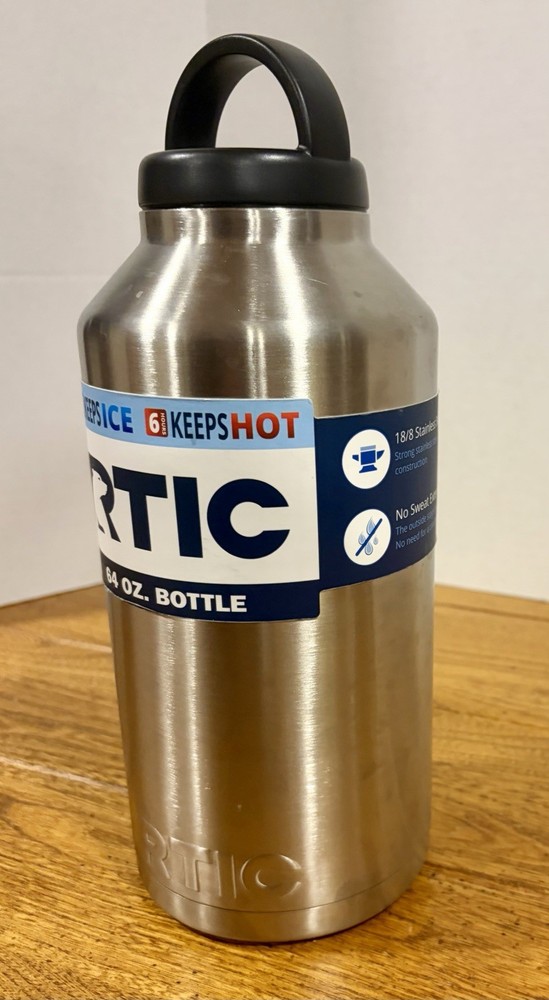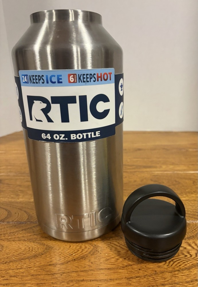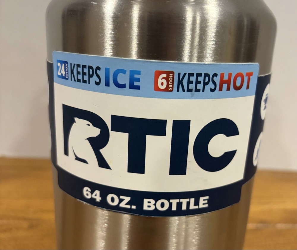 The RTIC 64oz Water Bottle Jug is a high-quality stainless steel water bottle that is perfect for outdoor activities like camping and hiking. With a screw-on lid and insulated design, this half-gallon bottle is leak-proof and will keep your drinks cold for longer periods. The sleek silver color and sporty theme make it a stylish choice for adventure and coffee enthusiasts. Additionally, the BPA-free material ensures that your water is safe for consumption. Perfect for staying hydrated on the go.