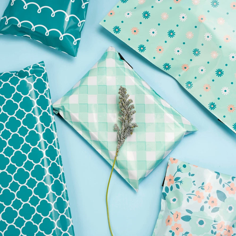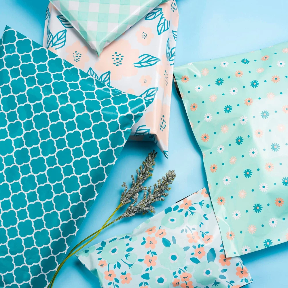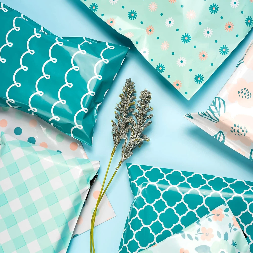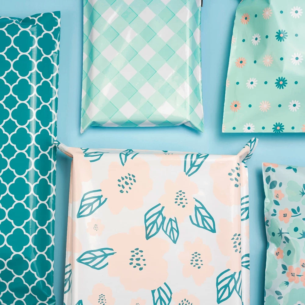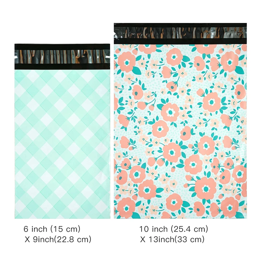 Size: 6 x 9 and 10 x 13 inches poly mailers, pack of 80, 10 pcs for each design, medium size for daily use, perfect for clothing, t-shirts and so on Design: Blue and pink flowers, plaid, dot design, the best choice padded envelopes for business shipping Thickness: Each poly envelope is 2.3 Mil thick, durable and tear-proof, provide maximum protection, a favorable image, and postage savings Self-Sealing: Self adhesive seal strip - easily close and ship your envelopes, no licking or water needed, tamper-evident, and super secure closure Features: Lightweight padded envelopes can saving the postage when shipping the items, also the best protection for the item