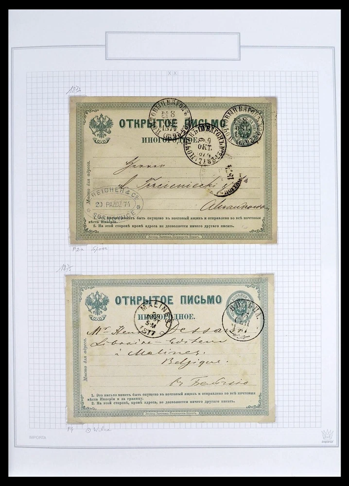 Established stampdealers on eBay since 1999! You are at one of the #1 eBay Sellers of the World since 1999. Enjoy our Excellent Trackrecord of 100% Positive 5 Ratings Feedback for years. Maarten Baas, eGlobals Stampdealers STORE HOME ABOUT US FEEDBACK ADD TO FAVOURITE SELLERS CONTACT US VIEW ALL ITEMS RUSSIA 1848-1945 Used Covers Field Post WWI WWII in 2 Albums Stamp Collection Scroll Down For 152 Images. Reference #39308. No Images? Contact us! Beautiful, almost completely canceled stamp collection Russia 1848-1945, including very many covers, cards, postal stationery, also a lot of field post from WWI and WWII, mail from foreign offices in China, Levant, etc. in 2 Victoria albums. eGlobals-Stamps Reference number #39308 Contact us when you prefer an external image link. Scroll down for 152 images. VALUABLE COLLECTION FREE SHIPPING WORLDWIDE ***** Check all 152 PHOTOS for EXACT content, what you see is what you get. The above image with the green background is the overview image. RUSSIA 1848-1945 Used Covers Field Post WWI WWII in 2 Albums Stamp Collection REFERENCE NR. #39308 Check Our Excellent 100% Positive 5 Star Feedback Ratings... For Years!! Some General Frequently Used Descriptions of Stamp Conditions: Mint hinged (MH) - Unused stamp but has been previously hinged. Remains of the hinge or gum disturbance are visible. Mounted mint (MM) - Same as Mint hinged. Mint no gum (MNG) - Stamp appears to be unused but has no gum. It might have been used but not cancelled, or have been issued without gum. Unmounted mint (UM) - Stamp is unused and has never been mounted. Mint never hinged (MNH) - Same as Unmounted Mint but with an assertion that the stamp is not a formerly mounted stamp. STORE HOME ABOUT US FEEDBACK ADD TO FAVOURITE SELLERS CONTACT US VIEW ALL ITEMS Worldwide Shipping SHIPPING We combine lots so you save on shipping. Shipments are sent by UPS only to street addresses (We are sorry we cannot ship to PO BOX addresses). SHIPPING WEIGHT can be higher due to protective packaging. International Buyers: Please Note: Import duties, taxes, and charges are not included in the item price or shipping cost. These charges are the buyer's responsibility. Please check with your country's customs office to determine what these additional costs will be prior to bidding or buying. Excellent Customer Satisfaction We strive for 5 stars on all sales! We strive for 5 stars on all sales. If we do not earn 5 stars, please contact us, so we can make it right ! Proud IPDA Member Stamp Dealers On The Web You Can Trust!