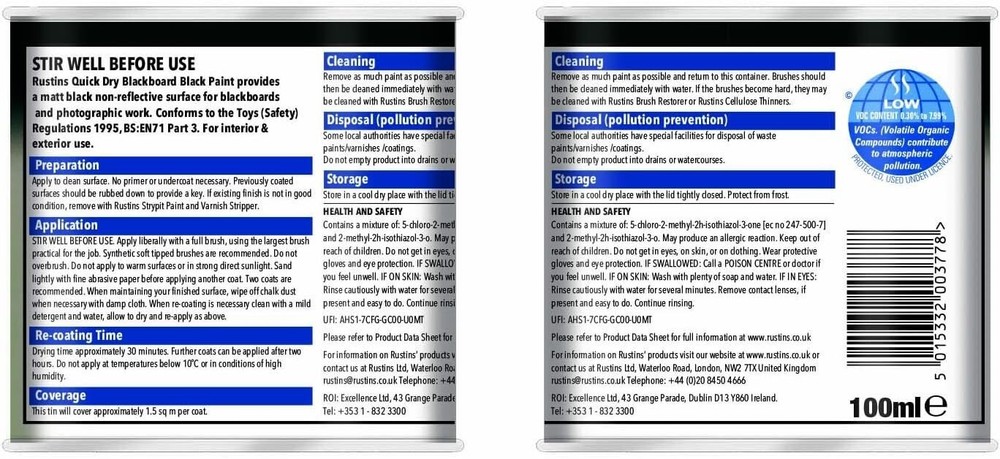 $ 4.97RUSTINS QUICK DRY SATIN BLACK PAINT FOR WOOD & METAL 250ML 500ML NEW