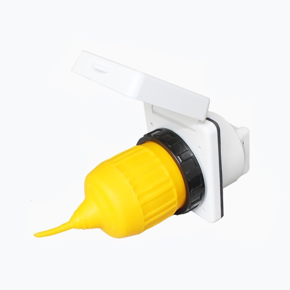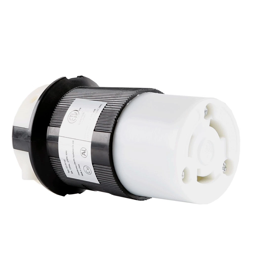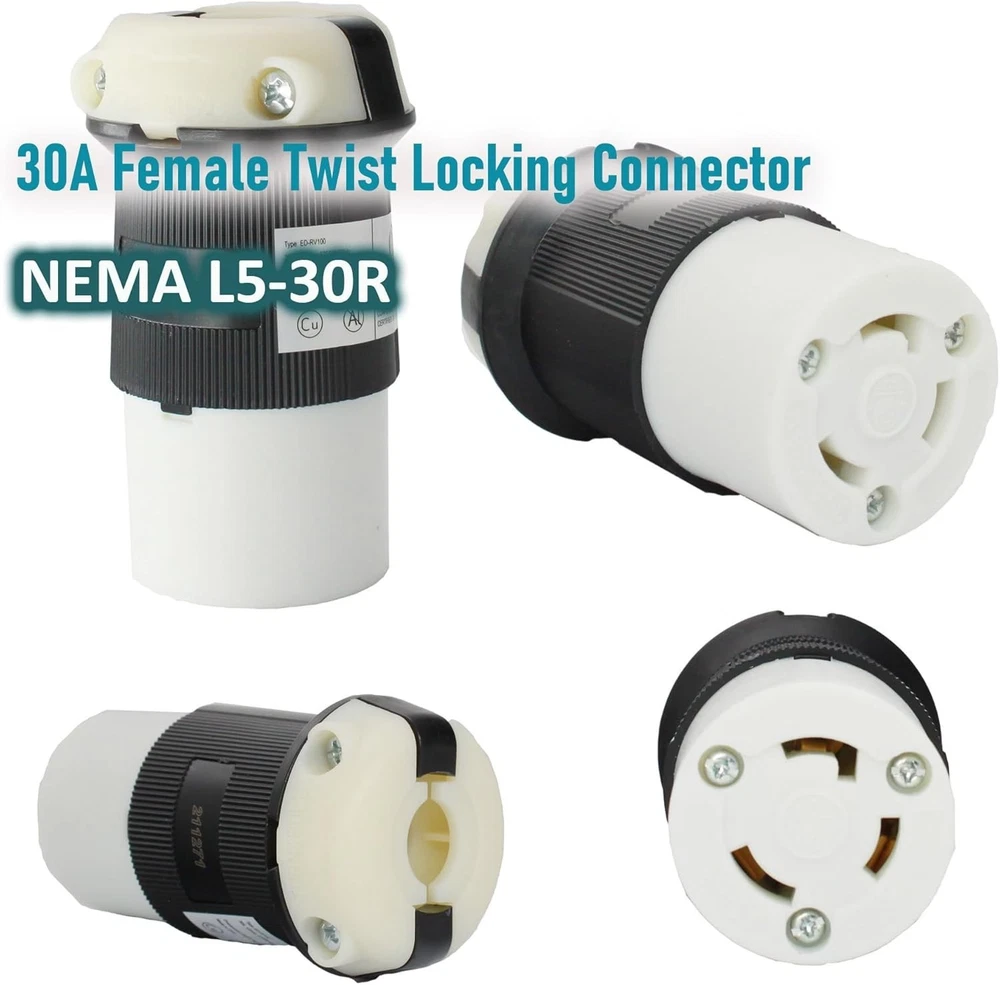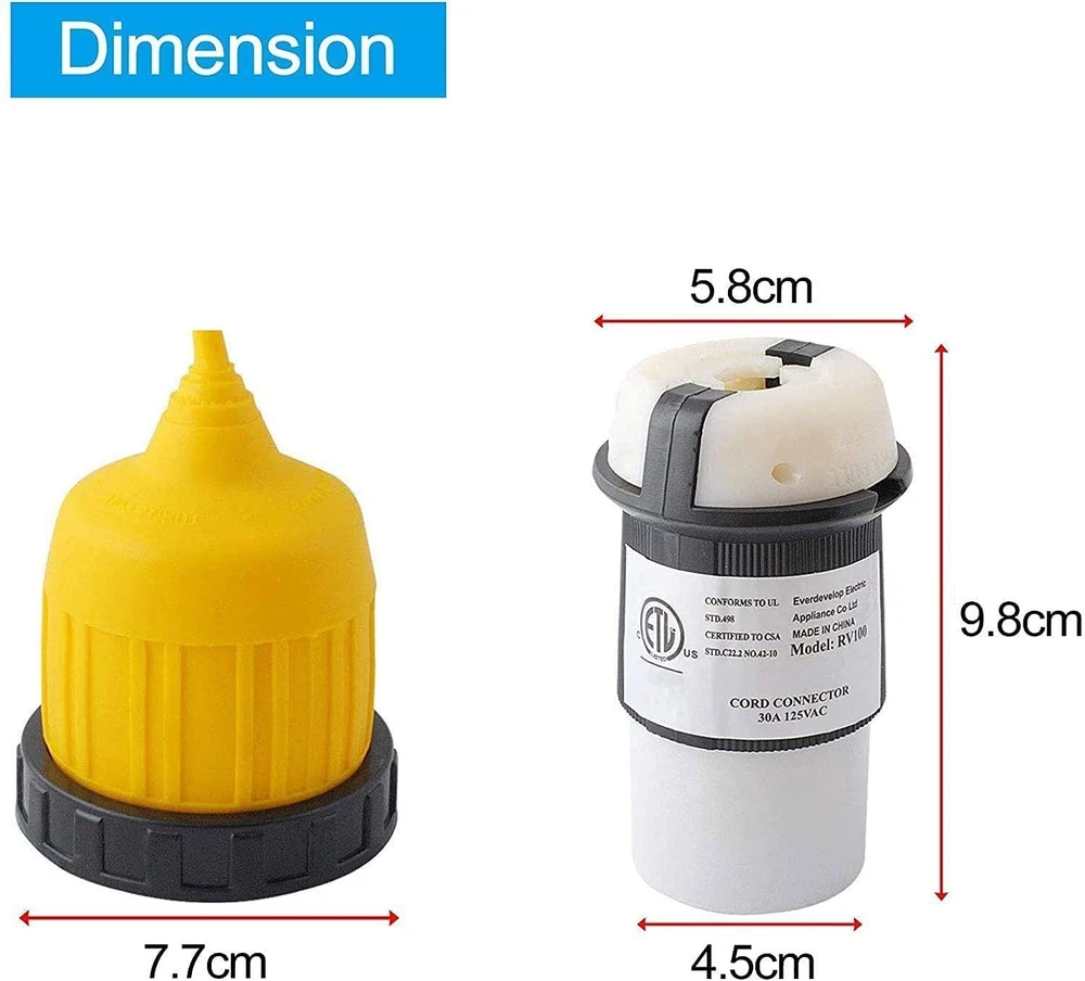 Features: Quanity: One power inlet receptacle ,One female twist locking connector, One weather-proof boot. Amps: 30 amp Voltage: 125V AC Hole Saw :2-7/8" , 30amp inlet requires the use of 8awg or 10awg wire, 3-wire :Black -load(125 volt) ,white - neutral, green - -equipment ground, Works great and was easy to install. RV Inlet constructed from corrosion-resistant plastic and stainless steel materials. Cover constructed with a bright yellow rubber body and Black heavy-duty plastic ring for extra longevity with no leaks. Specification: Item Weight:15.2 ounces Package Dimensions:6.4 x 5.6 x 3.3 inches Notice: In case the item is defective, please inform us within 15 days of receipt, we will arrange reship or refund. Buyers have to pay for the return cost and we will pay the cost for resend. If you are unsatisfied with our item or service, please contact us before leaving any feedback. We are committed to resolve all issues in a friendly and satisfactory manner. We always reply to messages within 2 business days (off-duty at weekend).If you do not get a response from us, then please check your junk or spam mailbox.