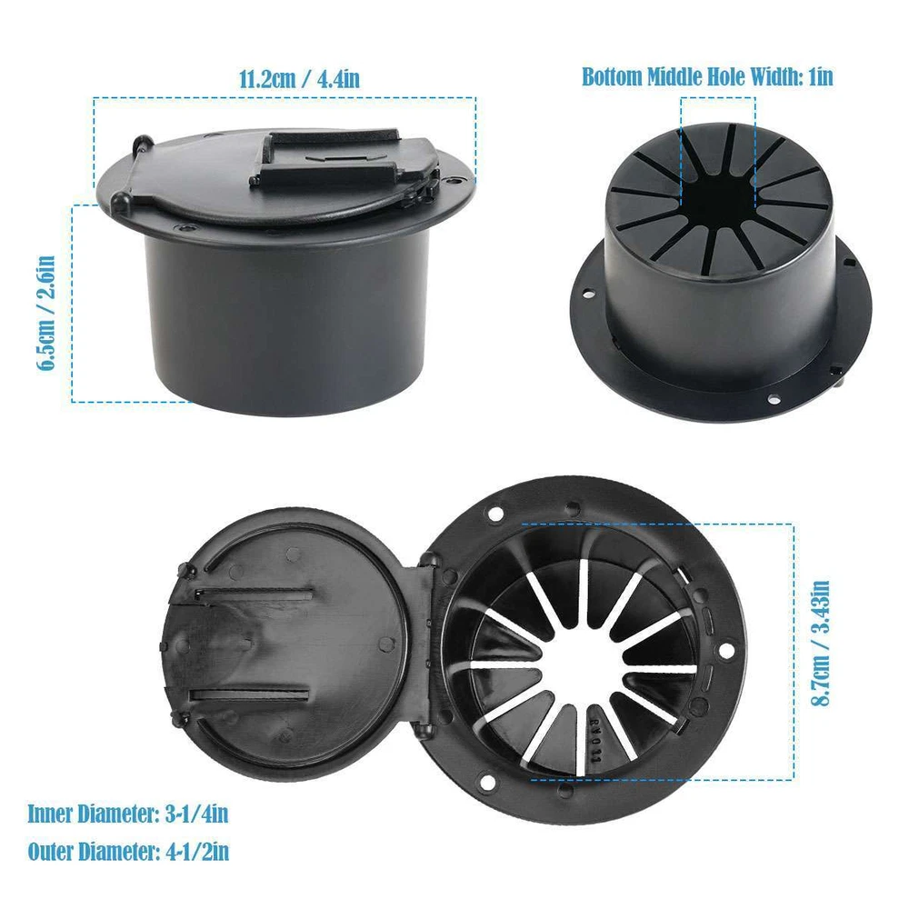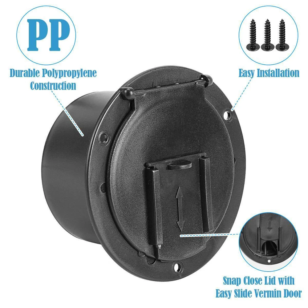 Product Description RV Camper Electric Power Cord Hatch / Cover Sun Fade Protected 50 AMP cord US Specifications: Material: Plastic Optional Color: Black, White Size: 11.2*11.2*6.5cm / 4.4*4.4*2.6in Inner Diameter: 3-1/4in Outer Diameter: 4-1/2in Container Max Diameter: 8.7cm / 3.43in Bottom Middle Hole Width: 1in Slide Door Opening Width: 1in Shape: Round Features: · 4-1/2” round-shaped RV power cord hatch for keeping your RV electrical cord protected and out of your way. · The hatch features a secure cover that snaps securely shut and a 1” sliding door for easiness on using the power cable. · Accept up to 50 Amp power cable. · Made of sturdy plastic for a great durability. · Mounting screws included for easy installation. · Available in black / white 2 colors to match the style of your RV. Notes: * Due to effect of light, camera and monitors, the item’s real color may have slight difference. * Allow slight dimension difference due to manual measurement. * Thank you for your kindly understanding. WARNING for California Residents: This product can expose you to chemicals including Diisononyl phthalate (DINP), which is known to the State of California to cause cancer. For more information, go to: https://www.p65warnings.ca.gov/. Package Includes: 1 X Power Cord Hatch 3 X Screws (Others are NOT included) Payment Shipping Returns PayPal is easy and safe, and we only accept PayPal payment. Please do not hesitate to contact us if you have any questions of payment procedures. Sales Tax: California residents, please add 8.75% for sales tax. Ship To Services Handling time Insurance Tracking Number USA Standard Shipping 1-6 Not include With CANADA USPS First Class Mail \International 5-10 Not include With Items dispatched to buyer's PayPal confirmed address from Monday to Friday (weekend & Holiday excluded) after payment has been received. Please check your shipping address carefully before checkout. If you want to change the address, pls kindly contact us through ebay message within three hours after payment. Otherwise, any change information may be disregarded once dispatched. Postage includes packaging material, shipping label, handling fee and so on. Do not provide local pick up service. Customers must contact us within 7 days to make a refund for all non-used products and buyers should return package with paid shipping label to our warehouse within 30 days since the delivery date.Issurance fee, shipping and handling charges are non-refundable. All NON-Seller's Mistake(E.g buyer change idea,dislike item or buy wrong item)returns for refund or replacement must contact seller first ,then all the problem will be processed.On this case,the buyer are responsible for shipping and handling charge as well as return fee. Any quality problem happened within warranty time, buyer has an obligation to cooperate with seller to verify the item's problem,If need replacement or refund,buyer are responsible for all kind of return shipment. Warranty service is limited to normal usage, any other artificial damage (such as disassembling by user, connecting with non-compatible accessories, not use according to the instruction and any other accident damage.Any maintainance and refit without seller's confirmation and upgrade, crack and the natural scratches on the plastic surface and accessories etc) as well as warranty stick damaged are out of warranty. Please make sure the item is intact and quantity is complete before signing the package or the item will be returned at once. Seller will not responsible for any problems such as breakage and deficiency after buyer signed. Please make a note in a paper with your eBay UserID,purchased date and details of the issue you are experiencing. Payment PayPal is easy and safe, and we only accept PayPal payment. Please do not hesitate to contact us if you have any questions of payment procedures. Sales Tax: California residents, please add 8.75% for sales tax. Shipping Ship To Services Handling time Insurance Tracking Number USA Standard Shipping 1-6 Not include With CANADA USPS First Class Mail \International 5-10 Not include With Items dispatched to buyer's PayPal confirmed address from Monday to Friday (weekend & Holiday excluded) after payment has been received. Please check your shipping address carefully before checkout. If you want to change the address, pls kindly contact us through ebay message within three hours after payment. Otherwise, any change information may be disregarded once dispatched. Postage includes packaging material, shipping label, handling fee and so on. Do not provide local pick up service. Returns Customers must contact us within 7 days to make a refund for all non-used products and buyers should return package with paid shipping label to our warehouse within 30 days since the delivery date.Issurance fee, shipping and handling charges are non-refundable. All NON-Seller's Mistake(E.g buyer change idea,dislike item or buy wrong item)returns for refund or replacement must contact seller first ,then all the problem will be processed.On this case,the buyer are responsible for shipping and handling charge as well as return fee. Any quality problem happened within warranty time, buyer has an obligation to cooperate with seller to verify the item's problem,If need replacement or refund,buyer are responsible for all kind of return shipment. Warranty service is limited to normal usage, any other artificial damage (such as disassembling by user, connecting with non-compatible accessories, not use according to the instruction and any other accident damage.Any maintainance and refit without seller's confirmation and upgrade, crack and the natural scratches on the plastic surface and accessories etc) as well as warranty stick damaged are out of warranty. Please make sure the item is intact and quantity is complete before signing the package or the item will be returned at once. Seller will not responsible for any problems such as breakage and deficie