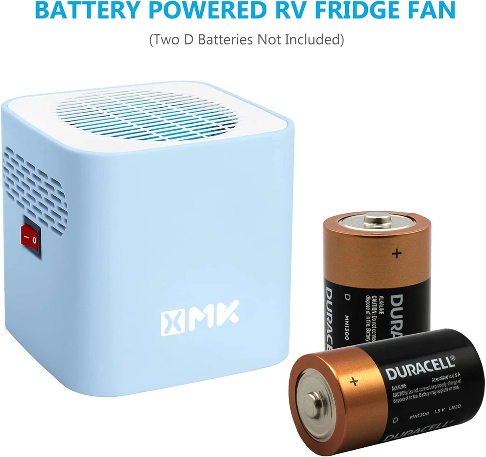 High Power RV Refrigerator Fan: XMK fan motor speed rating of 3000 RPM which circulate the cold air around in fridge efficiently and quietly. The compact design doesn't take up much space, great fit RV, camper, trailer, boat refrigerator. Maximum Airflow To Keep Fridge Cool: Multiple air vents increase airflow in all directions to keeping the fridge cool and keeping your food fresh for longer, as well as take some of the stress off the fridge. Balance Out Internal Fridge Temperature: The RV fridge fan keep the cold air uniformly spread, balance the temperature between the upper shelves and the lower shelves. Easy To Turn On And Off: There is a on/off switch on the fan, easy to turn on when it in use and turn off to saves battery life when not in use. Sturdy Refrigerator Fans For RVs: Well constructed with firm materials for durability and rated for fridge use to withstand cold and wet element. Product Description XMK RV Fridge Fan - A Must Have For RV Camper Refrigerator XMK portable RV Fridge Fan equipped with high power 3000 R/M motor and multiple vents helps circulates the air more efficiently and keep food fresh, a good solution to bad air circulation.