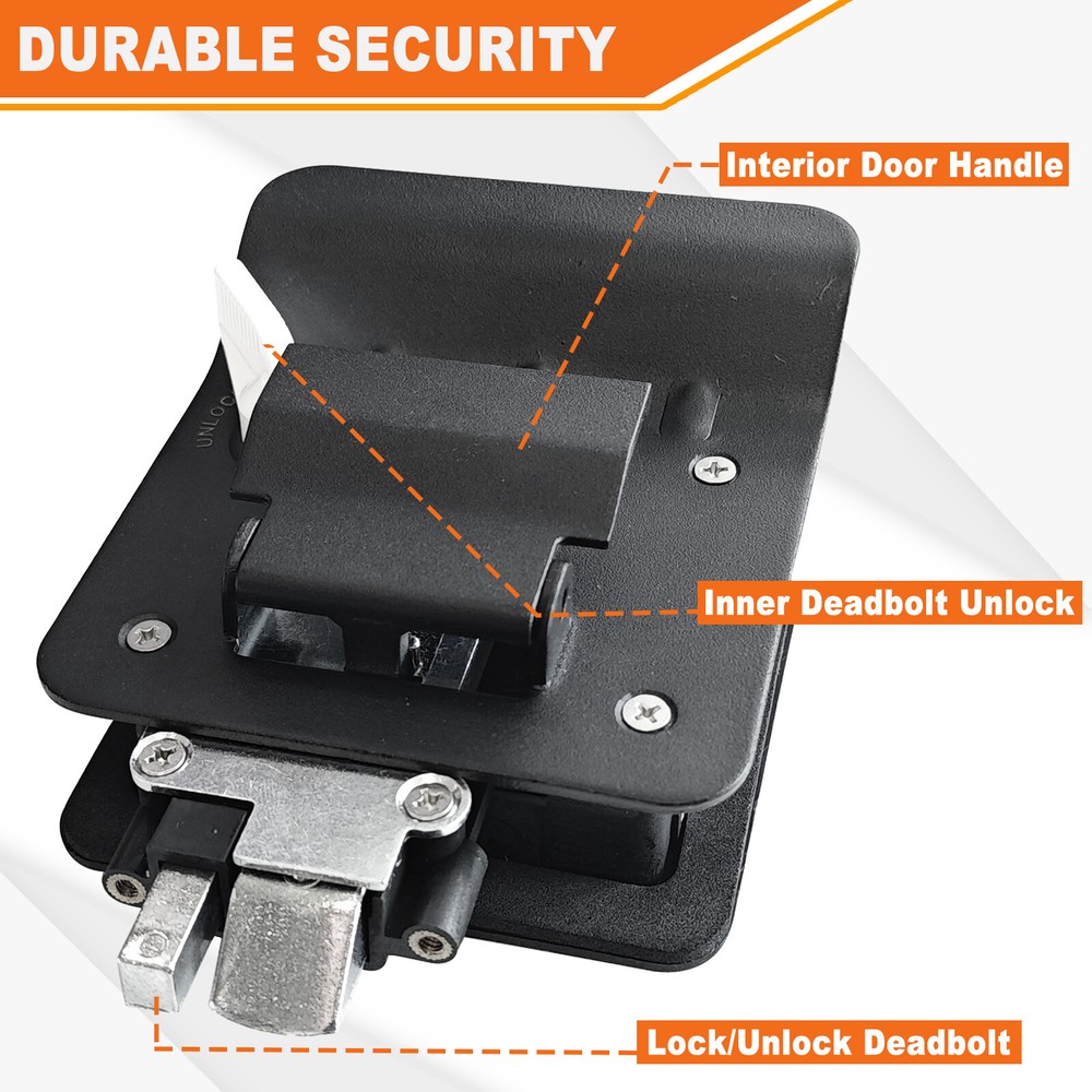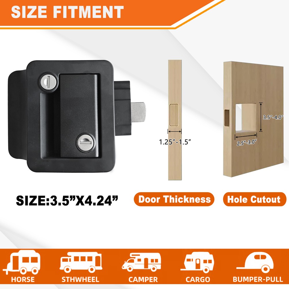 This RV paddle door lock is a game-changer for security and convenience! The sturdy black design blends seamlessly with my camper, and installation was a breeze thanks to the included guide and screws. The deadbolt adds serious peace of mind while traveling, and the smooth paddle handle makes opening/closing effortless. After several road trips, it still functions like new—no jamming or sticking. Perfect upgrade for any RV or trailer owner wanting reliable protection without sacrificing style. Highly recommend for durability and easy operation!