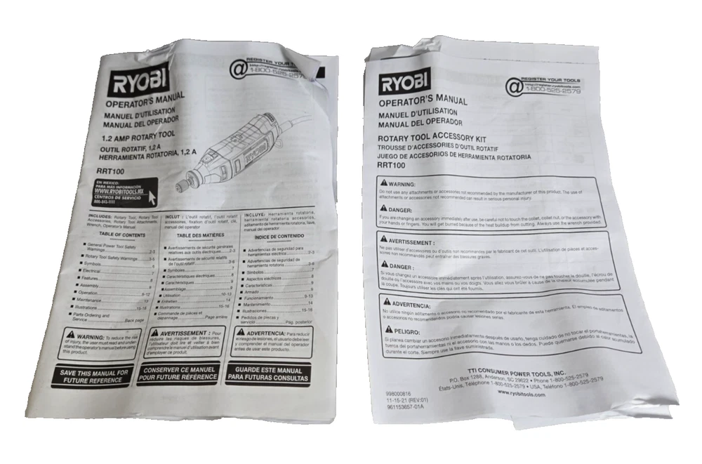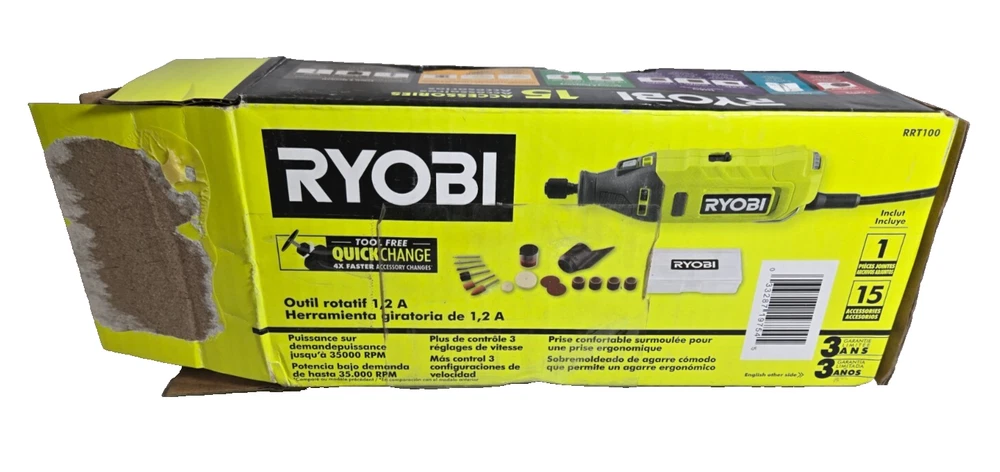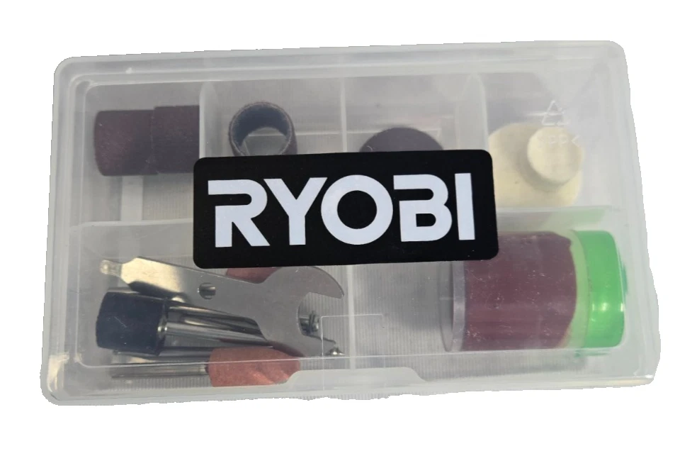 RYOBI 1.2 Amp Corded Rotary Tool with 14 Accessories (RRT100) Open Box - Excellent Condition - Tool & Accessories appear to be unused (see photos) Missing one cut off wheel (2 were included in original sealed box), all other items listed on box are included For more product info, see photos of box