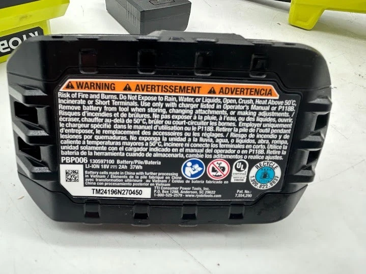 Visible signs of use on chain and in housing. Please see photos. Saw has been tested and operates as it should. Battery and charger included. The RYOBI 18V ONE+ HP Compact 8" Pruning Chainsaw is the perfect tool for homeowners and gardeners who want a powerful , compact , and easy-to-use chainsaw for pruning and light limbing. Featuring ONE+ HP Technology , this chainsaw combines a brushless motor , advanced electronics, and high-performance lithium technology to deliver 3X faster cutting for efficient and smooth operation. Designed with an 8" bar & chain , this pruning chainsaw can handle branches up to 6 inches in diameter, making it ideal for tackling those hard-to-reach areas and smaller trimming tasks. The saw is 30% more compact than traditional models, allowing you to access tight spaces with ease, while the oil-free design eliminates the mess and hassle of dealing with oiling. With a variable speed trigger , you get maximum control over your cuts, while the tool-less chain tensioning system lets you easily adjust the chain with the included combination wrench . Equipped with a chain guard for extra safety and a guarded handle , this chainsaw is built with safety in mind. It also boasts an impressive 65+ cuts per charge with the included 18V ONE+ 2Ah battery (battery and charger sold separately). Key Features: 3X Faster Cutting: Powered by ONE+ HP Technology for increased efficiency and faster cuts. Compact & Lightweight: 30% smaller for better access to tight spaces and hard-to-reach areas. High-Performance Cutting: 8" bar & chain easily cuts branches up to 6" in diameter , ideal for pruning and light limbing. Hassle-Free Operation: Oil-free design eliminates the mess and the need for constant oiling. Tool-less Chain Tensioning: Adjust chain tension easily with the convenient tool storage on board. Enhanced Control: The variable speed trigger offers you maximum control, whether you're trimming delicate branches or tackling tougher limbs. Safety Features: Chain guard and guarded handle ensure a safer cutting experience. 65+ Cuts per Charge: Get more work done on a single charge with the 18V ONE+ 2Ah battery (battery and charger sold separately). What's Included: 18V ONE+ HP Compact 8" Pruning Chainsaw Scabbard Combination Wrench Operator's Manual As part of the RYOBI ONE+ system , this chainsaw is compatible with all other RYOBI 18V ONE+ batteries and products, making it a great addition to your existing tool collection. We take great care to inspect all items and ensure they are accurately described. Should you have any issues with your purchase, please let us know immediately. We are committed to resolving any concerns promptly and to your satisfaction. Our small business truly appreciates your patronage.