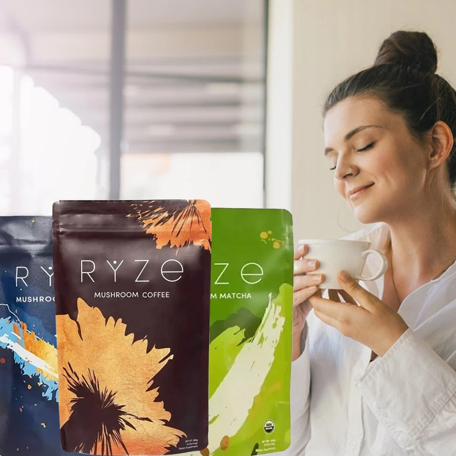 Ryze Mushroom Cocoa Coffee Matcha Portable Kettle Leather Case Recipes Choose favorites Looking for a delicious and healthy alternative to your regular coffee? Check out this amazing Ryze Mushroom Coffee or Ryze Mushroom Matcha with Functional Coconut Creamer. This organic instant mushroom coffee and green tea ceremonial grade matcha comes in a blend of varieties mushroom, coconut milk, matcha, creamer that will give you the energy you need to start your day. With only 15 calories per serving and a serving size of 8oz, this product offers you a healthy and convenient way to enjoy your coffee. The package comes with 30 servings and a leather case that makes it easy to take with you wherever you go. Plus, you can find some great recipes to make with this product, making it a versatile choice for any coffee lover. Don't miss out on your chance to try Ryze Mushroom Coffee today!