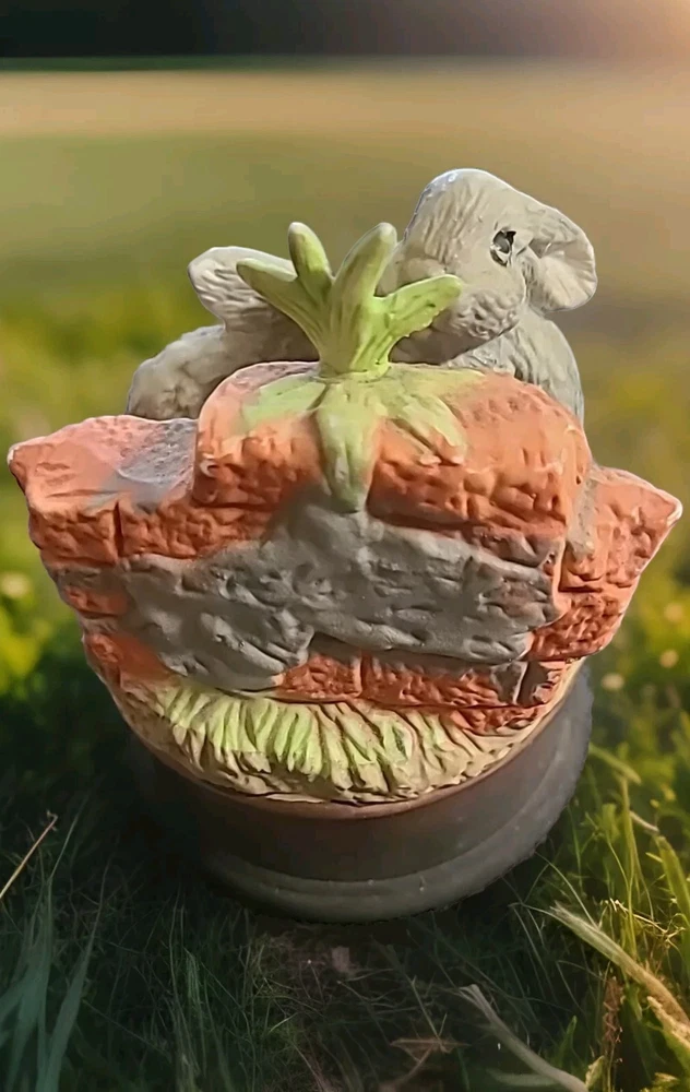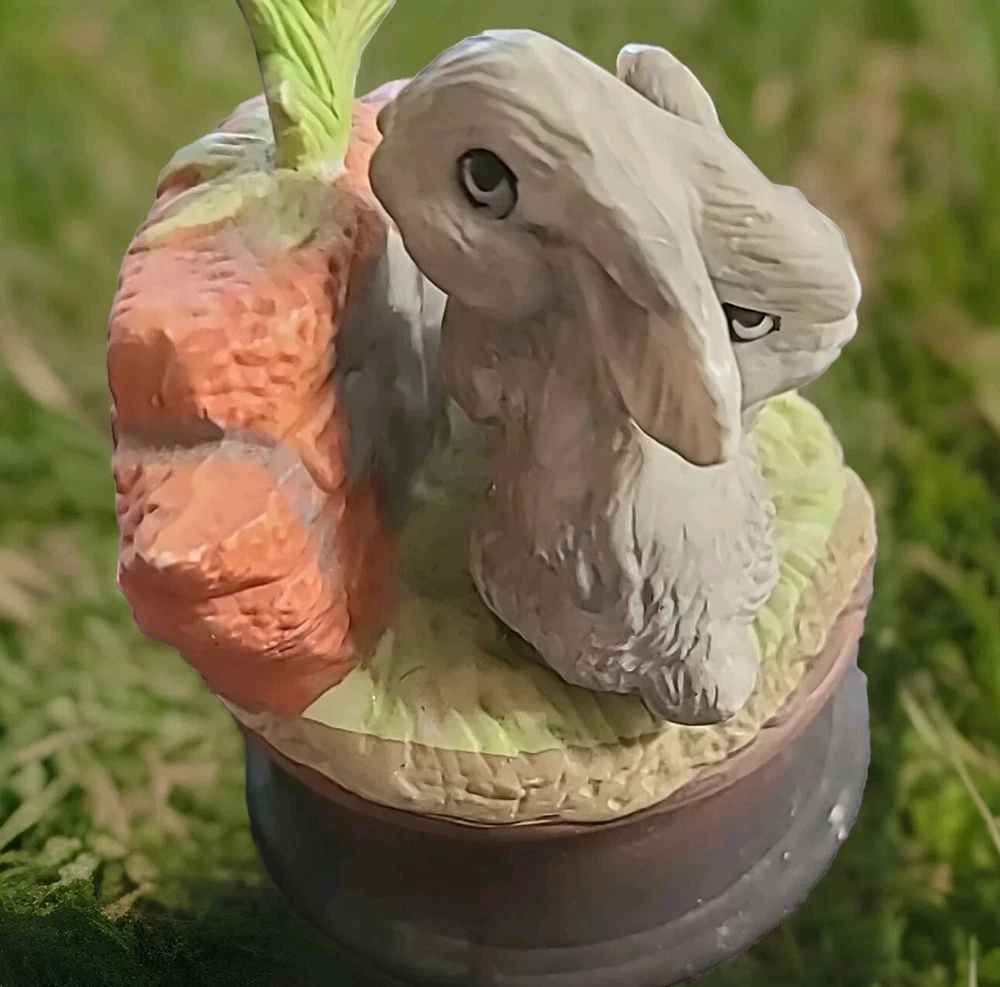 Rabbit Music Box Vintage Interpur Ceramic Bunny Feeding Revolving Collectible