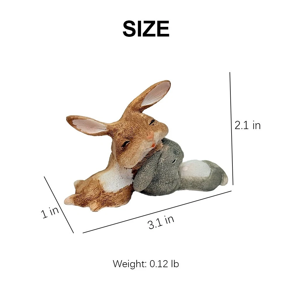 Cute Bunny Design: Delightful bunny figurines with intricate craftsmanship that are perfect for adding whimsical charm to your décor. A great choice to bring a touch of nature to your living space. Fine Details: Meticulously carved lifelike details that showcase the rabbit's playful poses and expressions. This attention to detail makes it a captivating piece that stands out in any setting. Gift-worthy option: Perfect as a thoughtful gift for bunny lovers or someone who appreciates unique art deco. This rabbit sculpture is a charming gift that will bring joy and style to any recipient. Multifunctional Decoration: This bunny ornament is suitable for every style, from modern to country, making it a versatile addition to your home or office. Show your love for nature with this beautiful decoration. Durable resin material: Made from high-quality resin, ensuring durability and longevity. The sturdy construction guarantees that this charming rabbit statue will be a beloved part of your décor for years to come.