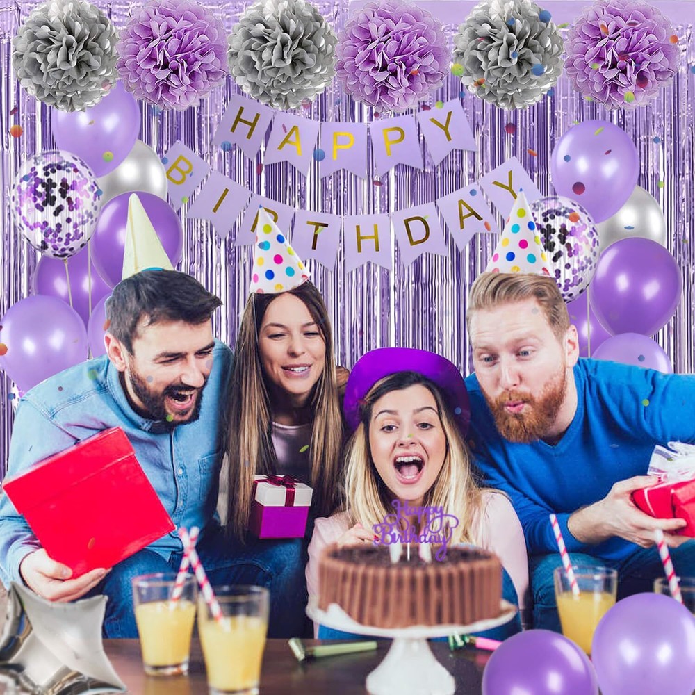 Rabbmall Purple and Silver Birthday Decorations for Women Girls Lavender Party Decor Set with Happy Birthday Banner and Balloons, Sash and Crown, Curtains, Cake Topper Table Cloth All-in-one lavender theme purple birthday party decoration saves a lot of your time and energy in hunting around various online shop. Add the beautiful purple and silver color will add more romantic and festive atmosphere for your birthday party. What in your party balloon packs: 1) HAPPY BIRTHDAY paper banner (1set) 2) light purple pompom flower – 3 pcs, 10 inch 3) silver pompom flower – 3 pcs, 10 inch 4) purple latex balloons – 10 pcs, 12 inch 5) light purple latex balloons – 10 pcs, 12 inch 6) purple cofetti latex balloons – 5 pcs, 12 inch 7) silver latex balloons – 10 pcs, 12 inch 8) star- shaped foil balloons – 2 pcs , 18 inch 8) heart- shaped foil balloons – 2 pcs , 18 inch 9) foil fringe curtains – 2 pcs 10) princess crown and birthday queen sash 11) cake topper – 1 pcs 12) plastic tablecloth – 1pcs, 4.5X 9ft 13) Accessories: 1 x straw, 1 x ribbon, 1 x glue dot Purple Birthday Decorations for Her : Lavender purple decor is suitable for women and girls of most ages: 21st, 30th, 40th, 50th, etc. It look romantic and mysterious after assemble, your families, friends will have a unforgettable memories! Great Value Box: 1 set purple HBD banner, 2pcs tinsel foil fringe curtains, 40pcs latex balloons in purple and silver, 4pcs foil balloons, 6pcs pom poms, 1 princess crown and birthday queen sash, 1pcs cake topper, 1pcs plastic tablecloth. Premium Quality Balloons: These birthday balloons are made of ECO-friendly Foil and rubbery, safe and non-toxic, strong and long lasting, support helium and air. Note: Please DO NOT overfill the balloons,suggest inflate to 85%-90%. Characteristic Birthday Party: The crown and sash specifically designed for the birthday queen, she will get a big hit! A lot of details like tablecloth, cake topper, Curtains and balloons will fill the room with luxurious-look purple. Customer Service: We support refund or resend for any missing or damaged parts in your package and offer LIFETIME WARRANTY! If you have any problem or you need help, please feel free contact us via order page, we will solve it for you. Shipping from the USA All of our products are shipped from the USA, ensuring quick delivery to your destination. Payment We offer the following payment methods: PayPal, credit card, bank transfer, and eBay's secure payment system. Free Shipping & Free Returns Shipping within the USA is FREE. Additionally, any return is absolutely free for you. Risk-Free Purchase You have the option to return an item within 30 days without any justification. We cover the return shipping costs! Fast Shipping We ship immediately upon receipt of payment. Generally, the package is delivered within 2-3 days in the USA. If it takes longer, we will contact you. Quality and Costs Made in Europe, USA, China No customs fees or additional charges Total satisfaction guarantee Invoice with declared VAT available upon request in .pdf format Feedback Your feedback is very important to us. After you pay for your purchase, you will automatically receive positive feedback from us.