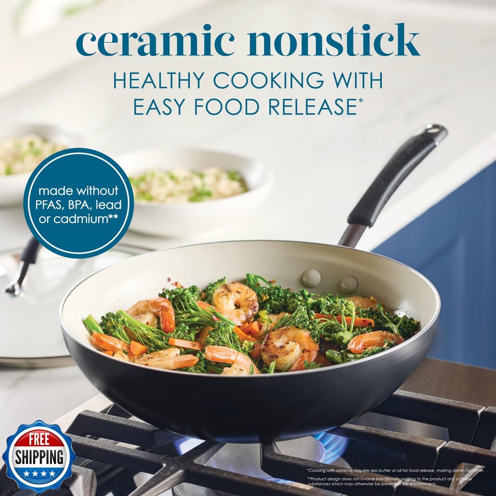 Rachael Ray Cucina Ceramic Nonstick Stir Fry Pan and Lid, 11 Inch Non Stick Wok Pan, Dishwasher Safe - Peppercorn Features HEALTHY CERAMIC NONSTICK: High-quality nonstick ceramic on cooking surface and coated rivets for easy-peasy food release and cleanup. Plus, you don’t need as much butter or oil when cooking on ceramic, making dishes that much healthier MADE WITHOUT PFAS: Rachael Ray’s Cucina Ceramic Nonstick is made without PFAS, PTFE, PFOA, BPA, lead or cadmium (Product design does not involve intentionally adding to the interior nonstick coating any of these substances which may otherwise be present in the environment) NEXT-LEVEL NONSTICK: This is no basic nonstick stir-fry pan. You’ll be amazed how effortlessly the cooking surface releases food - even eggs won’t stick! - and cleaning it is simply a cinch COMFY CONTROL: Silicone-grip handles on the pan and lid stay cooler and make for a comfortable and secure hold on your pan. Handles are attached with double rivets and the glass lid is shatter-resistant, making the pan durable enough for everyday use DISHWASHER & OVEN SAFE: This versatile pan is dishwasher safe, oven safe to 400 degrees F (lids to 350 degrees F), and ready for any stovetop (except induction) Shipping Free & Fast Shipping: We offer free shipping to most of the USA with a normal delivery time of 3-7 days. However, due to the current situation, additional delivery time (up to 3 weeks) may be required for some items. Alternative Carriers: We may use alternative carriers (e.g., USPS, FedEx, UPS) to ensure your package arrives safely and on time. Due to the use of multiple carriers, we are unable to provide a tracking number automatically. Handling Time: Orders are processed and shipped within 1-2 business days of receiving cleared payment. Shipping Restrictions: Shipping to Alaska, Hawaii, Puerto Rico, Guam, and other US territories may incur shipping charges or delivery restrictions. Please contact us before ordering, or your order can be refunded/cancelled. State Restrictions: Certain items may not be shipped to California due to state regulations. Contact for Tracking Updates: If you require tracking updates or have any concerns about the delivery of your order, please feel free to contact us, and we will be happy to assist you. Return Policy 30-Day Hassle-Free Returns: If you are not completely satisfied with your purchase, you can return the item for free within 30 days of receiving it for a full refund or exchange. Easy Return Process: Contact us, and we will provide you with a prepaid return shipping label and detailed instructions. No Restocking Fee: There are no restocking fees for returns. However, the buyer is responsible for return shipping costs if the return is not due to a seller"s error. Refund Processing: Refunds will be processed within 1 business day of receiving the returned item in its original condition. Feedback Your feedback is extremely important to us. We strive to provide the best products and customer service possible. If you are satisfied with your purchase, please take a moment to leave us a positive review. If you have any concerns or issues with your order, please contact us before leaving negative feedback. We are committed to resolving any problems and ensuring your satisfaction. Contact Us If you have any questions or concerns, please feel free to reach out to our customer support team. You can contact us through the eBay messaging system. We are available Monday to Friday, 9:00 am to 5:00 pm EST, and we will do our best to respond to your inquiry within 24 hours. Thank you for supporting our small family business!