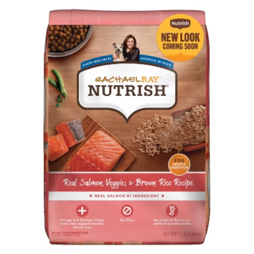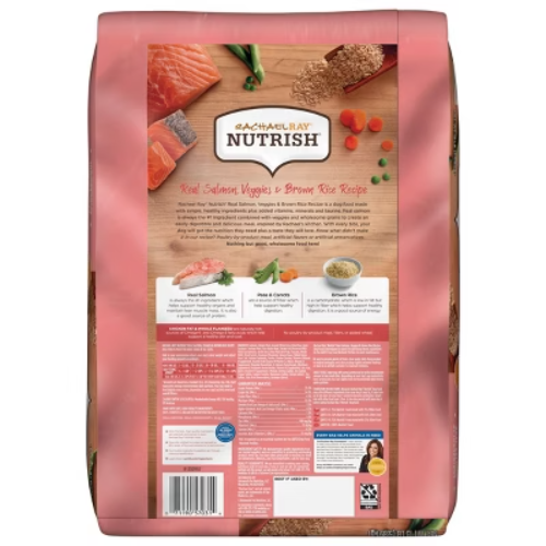 Important Note for Our Valued Customers: To offer you the best prices with free shipping, we occasionally experience shipping delays. If this happens, we’ll notify you immediately, issue a full refund, and invite you to place a new order at your convenience. To keep costs low, we sometimes reuse branded packaging boxes for shipments—we appreciate your understanding if you receive your order in repurposed packaging. Rest assured, all products we sell are 100% brand new, unopened, and freshly manufactured, including pet food and human-grade items, with a minimum 8-month shelf life remaining. If any issues arise, please contact us first—we’re committed to resolving them quickly. If you’re not completely satisfied, we offer a full refund with no hassle. Thank you for your trust and support! Highlights Contains one (1) 5.5-pound bag of natural dry dog food with added vitamins, minerals and taurine Real salmon is always the number one ingredient to help support healthy organs and build lean muscle mass Brown rice, peas and carrots help support gentle, healthy digestion No poultry by-product meal and no added wheat, wheat gluten ingredients, artificial flavors or preservatives Safely USA cooked with the world’s finest ingredients Description Give your dog a real catch at mealtime with Rachael Ray Nutrish Real Salmon, Veggies & Brown Rice Recipe. This natural dry dog food recipe is made with simple, delicious ingredients plus added vitamins, minerals and taurine to help support your dog’s digestive health and give them the nutrition they need. The recipe’s number one ingredient, real salmon, is rich in protein to help support healthy organs and maintain lean muscle mass. Salmon is a premium protein source that can be a healthy way to add variety to your dog’s meals. Brown rice, peas and carrots are great sources of fiber to help support gentle, healthy digestion. Plus, there’s no poultry by-product meal, fillers, or added wheat, and no artificial flavors or preservatives. Just good, wholesome food inspired by Rachael’s kitchen that your dog is sure to love.