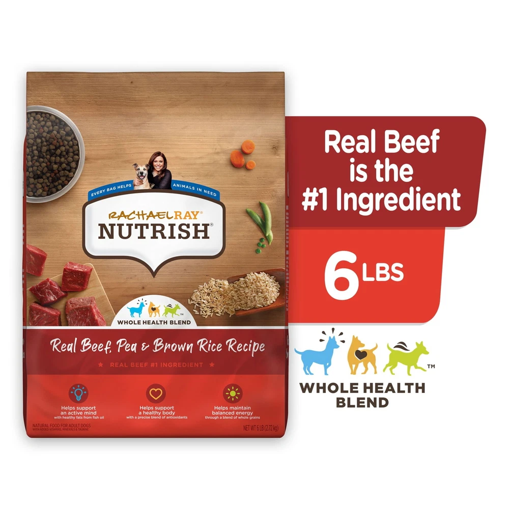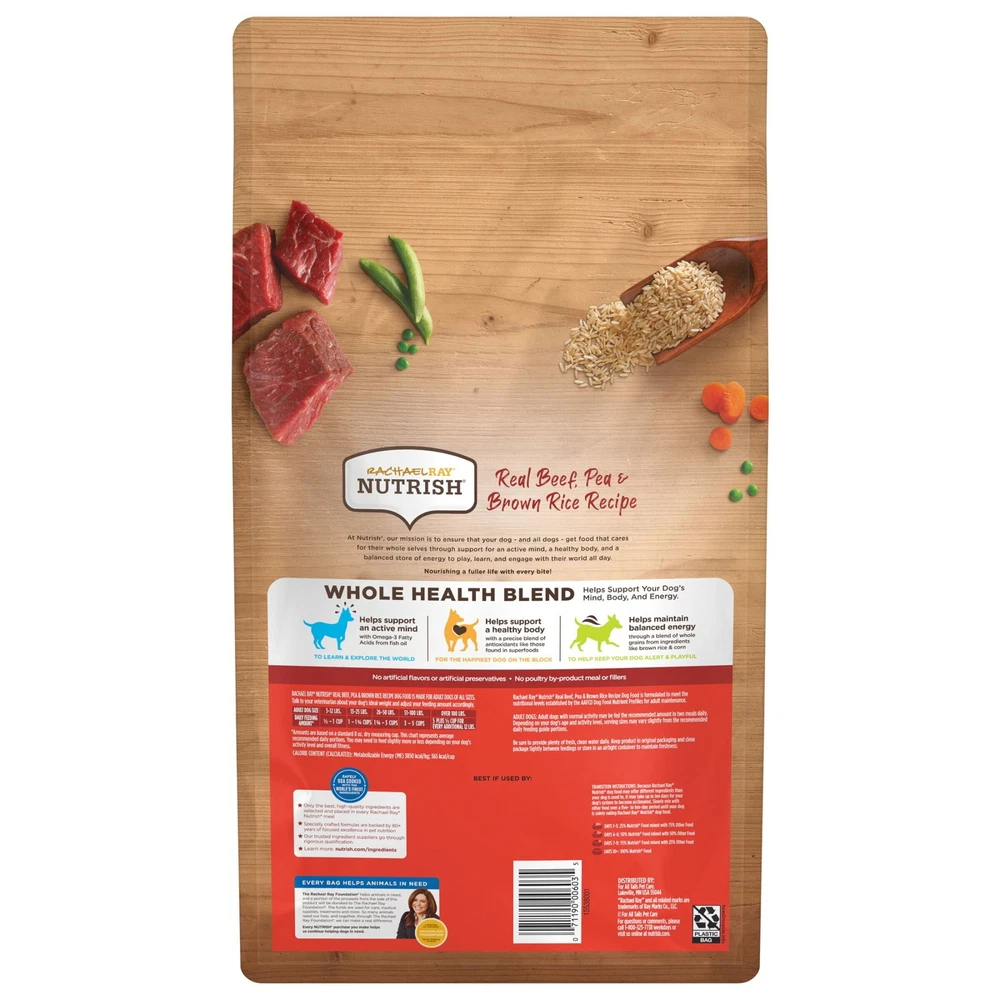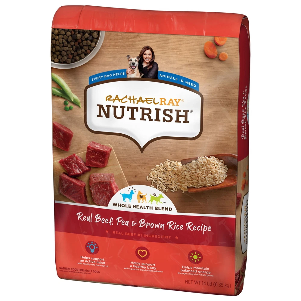 Help your dog keep up with the pack by feeding themNutrish Real Beef, Pea & Brown Rice Recipe. The number one ingredient in this dry dog food is real beef, which helps support healthy organs and maintain lean muscle mass, while fiber sources including peas and brown rice help support healthy digestion. We’ve also added our Whole Health Blend, which includes Omega-3 fatty acids to support an active mind, vitamin C for immune support, and proteins and whole grains to help maintain balanced energy. And it does all that with no artificial flavors and no artificial preservatives. Plus, a portion of the proceeds from the sale of every Nutrish dog food product will be donated to The Foundation, which helps animals in need. So, get a bag and make your dog the happiest one on the block. Contains one (1) 14-pound bag of dry dog food Natural dry dog food for adult dogs with added vitamins, minerals and taurine Includes Nutrish’s Whole Health Blend which helps support a healthy mind, body, and energy level Made with real beef as the number one ingredient A portion of the proceeds from the sale of this product will be donated to The Foundation, which helps animals in need