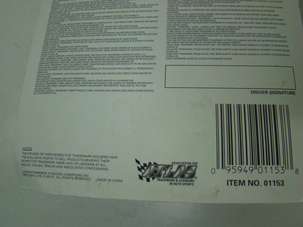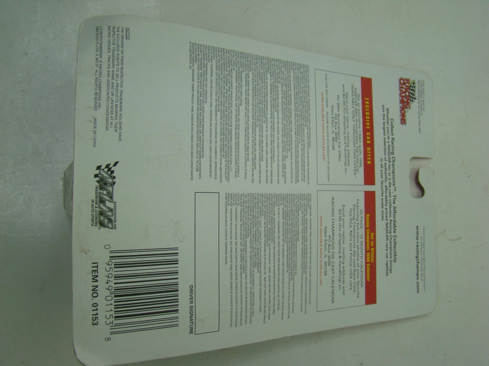 MPN:01153Character Family:CarsRace series:DaytonaOrganization:NASCARMaterial:DiecastAge Level:12-16 Years, 8-11 Years, 4-7, 3-4 Years, 17 Years & UpGTIN:0095949011538Color:Bluegtin13:0095949011538Brand:Racing ChampionsVehicle Type:NASCAR RacecarUPC:0095949011538Scale:1:64Features:With Case, With Stand, Unopened Box, Advertising Specimen, Limited EditionRecommended Age Range:5Vehicle Year:1994Driver:Terry Labonte