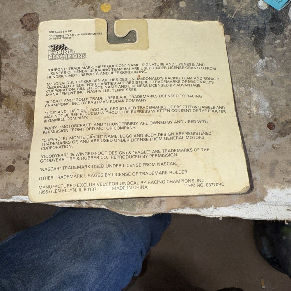 Model: # 24 Character Family: Cars gtin13: Does not apply Brand: Racing Champions Features: Unopened Box, collectors edition UPC: Does not apply Scale: 1:64 Material: Diecast Vehicle Year: 1996 Organization: NASCAR