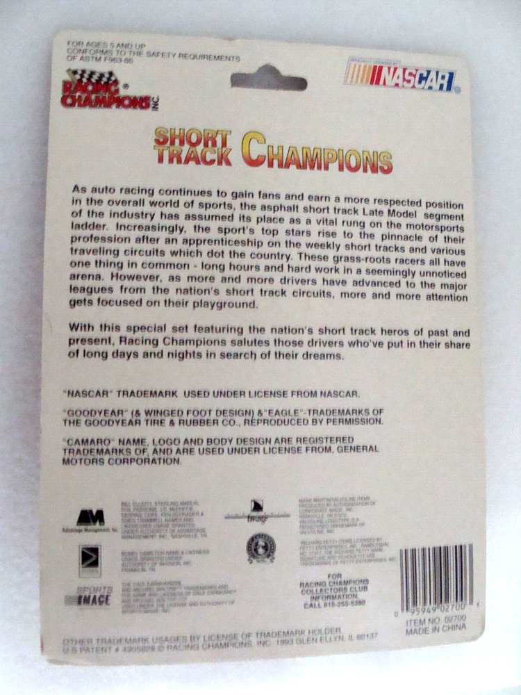 Car remains in new condition on the never opened blister bubble package from 1993 Racing Champions. Short Track Champions Series. 1:64 scale. Pkg in good condition. Minor wear at eyelet. Please Review All Photos. Still nice. Great looking card of Mark Martin in the RECO #2 Late Model also included. Winner to pay $6.55 S/H USPS GA w/tracking. Thanks for looking and great luck with your bid. Makes for a great addition to any collection. Days Gone By !!!