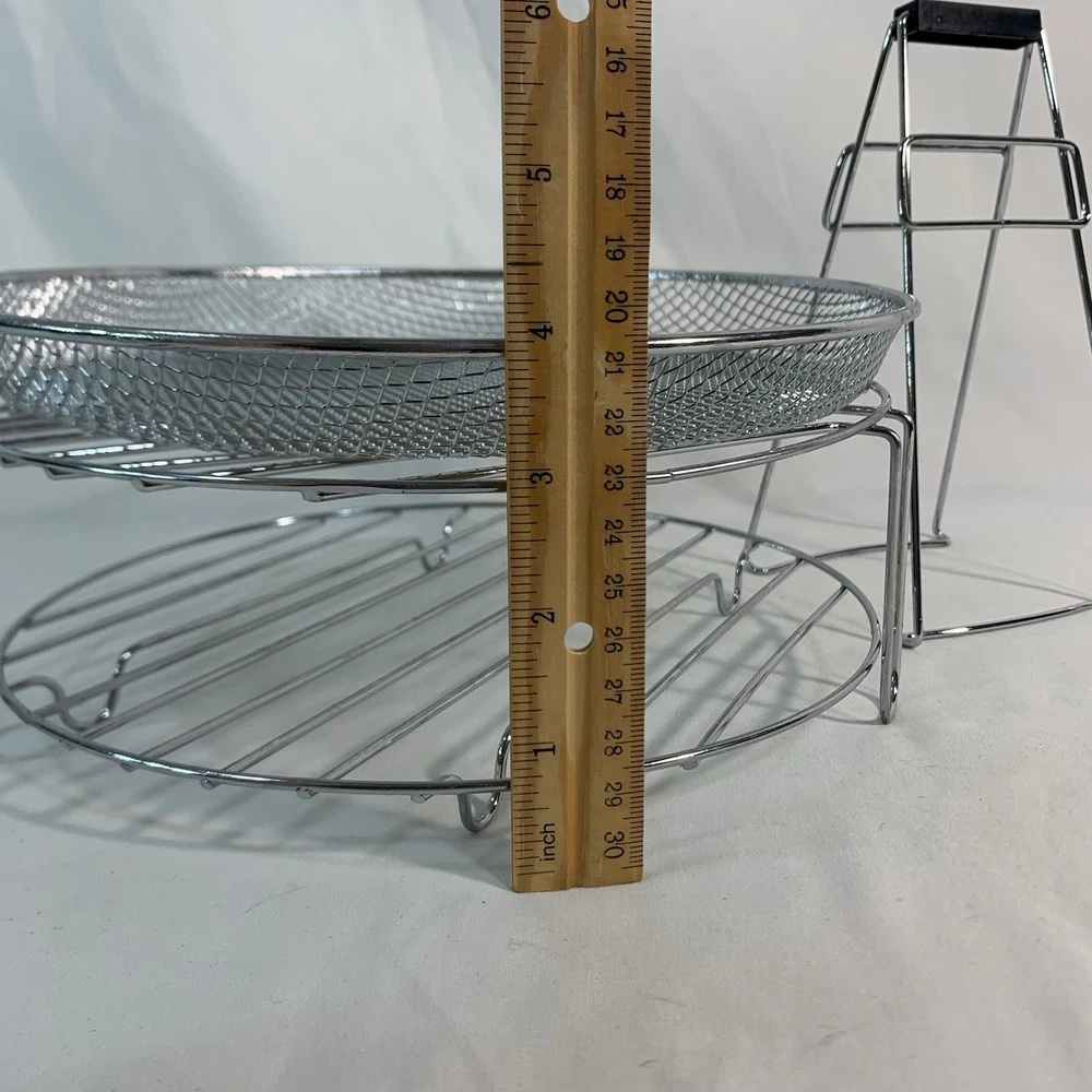 The Rack/Basket/Holder for Big Boss 16 Qt Oil-Less Air Fryer Convection Oven 8605 is a convenient accessory set designed specifically for the Big Boss brand. Made of durable wire rack material in a sleek silver color, this set includes a holder/lifter, basket, and 2 racks for added versatility. Perfect for use with the 8605 model, this multi-cooker and convection oven combo allows for efficient and even cooking, making meal preparation easier and more convenient. Ideal for those looking to maximize their cooking potential in the kitchen, this accessory set is a must-have for any home chef. Includes 1 basket, 2 stackable wire racks and 1 lifter. Great condition.