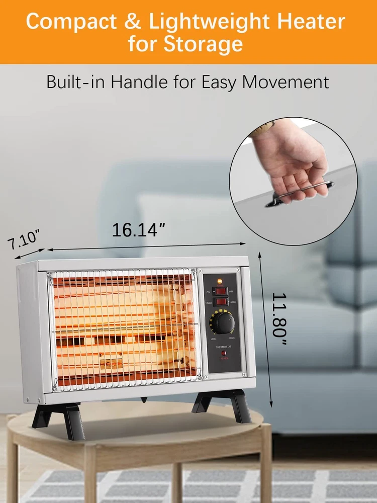 Need a radiant heater for your pet? Can’t find a suitable heater for home in cold weather? Feel chilly when chatting with your friends in living room in winter? HAVE A TRY! ↓ ↓ ↓ ↓ Indoor Space Heater The portable radiant heater contains heating wires and high-rated heating system that provides heat evenly and rapidly. Reflective heating technology replicates the sun’s rays, producing no odors, chemicals or fumes and warming the object or person in front of the heater rather than the front air. Specifications: 1250/1500W Two Heating Settings Built-in Thermostat from Low to High Tip-over Protection for Safety Built-in Over Heating Protection Portable Handle for Easy Carry Lightweight - 5.4lbs Oversized Air Vent Stable Bases - Easy disassembled for storage Still not convinced? Here are more reasons you should get this heater: ETL approved for the U.S. Instant warmth - enjoy the heat as soon as you turn on the heater Stylish design that complements your interiors - black and white choices Electric heater - safer and more environmentally friendly for your living condition Warm your home the energy efficient way. Add Space Heater to your cart TODAY! ❤【FAST CONTINOUS WARMTH】Once you turn on the heater, you’ll be surrounded by instant warmth - less than 3 SECONDS. The radiant heater uses electricity and does not output carbon dioxide, saving 30%-40% on electricity compared to a traditional heater. ❤【FAST CONTINOUS WARMTH】Once you turn on the heater, you’ll be surrounded by instant warmth - less than 3 SECONDS. The radiant heater uses electricity and does not output carbon dioxide, saving 30%-40% on electricity compared to a traditional heater. ❤【EASY OPERATION】With on/off switch and two heating settings, you can choose the desired temp for heat; oversized air vent for convection, perfect for personal heating at home, garage, dorm, bathroom, bedroom, etc. The heater radiates heat with no odors, chemicals or fumes and warming the object or person in front of the heater rather than the front air. ❤【EASY OPERATION】With on/off switch and two heating settings, you can choose the desired temp for heat; oversized air vent for convection, perfect for personal heating at home, garage, dorm, bathroom, bedroom, etc. The heater radiates heat with no odors, chemicals or fumes and warming the object or person in front of the heater rather than the front air. ❤【RELIABLE CUSTOMER SERVICE】Customer service responds within 24 hours business days; 30-day money pay back and 12-month manufacturer replacement. If you have any questions, please do not hesitate to contact us through Amazon buyer-seller message, we provide 100% service with our indoor space heater!