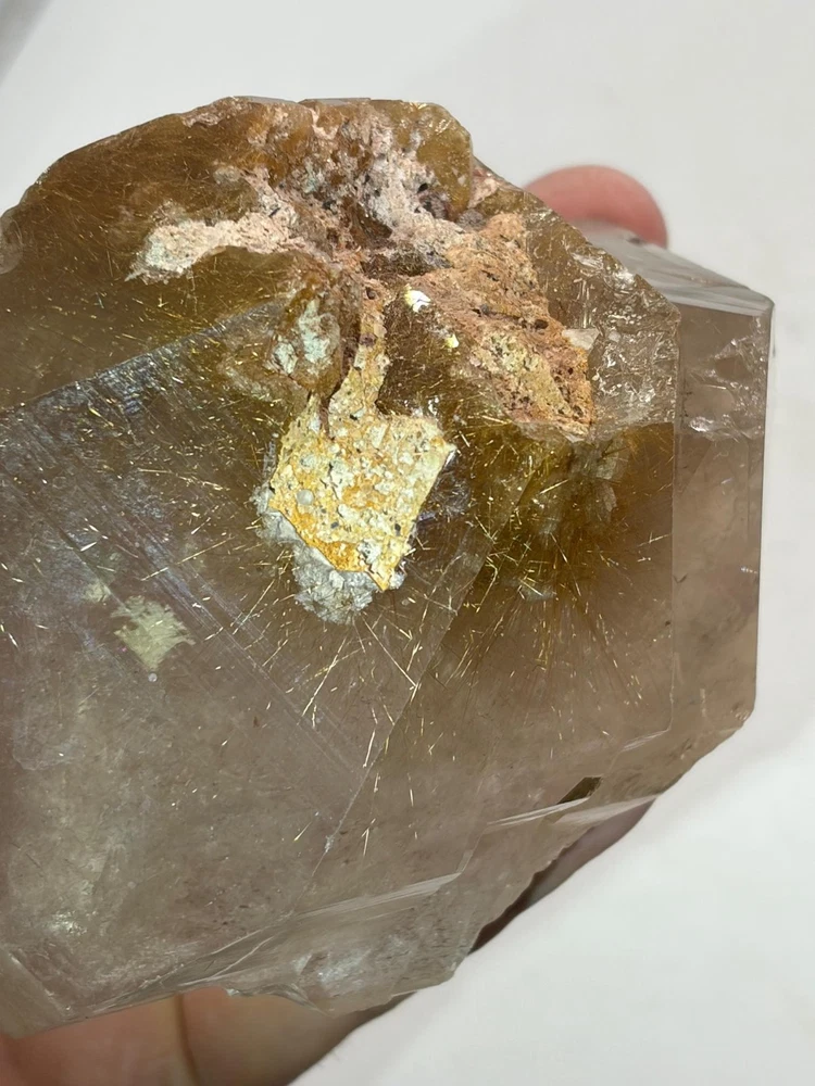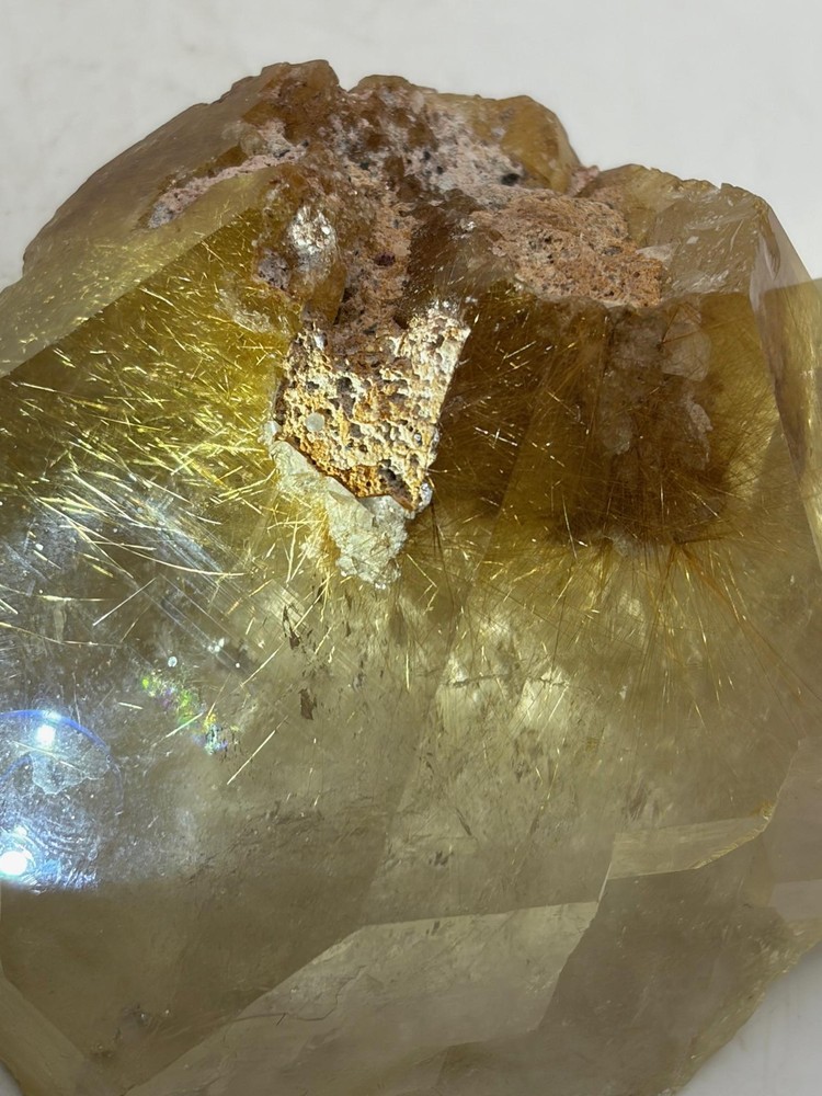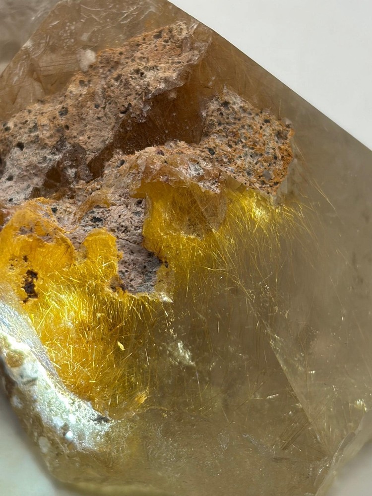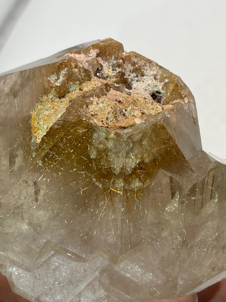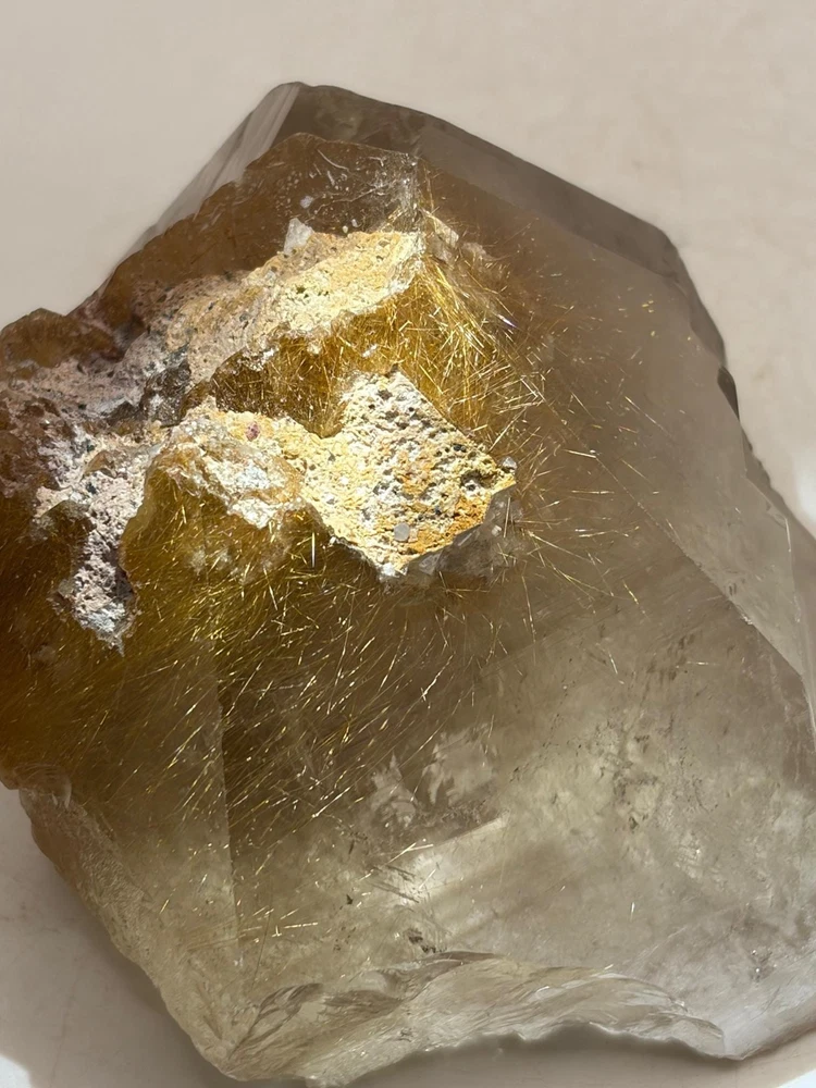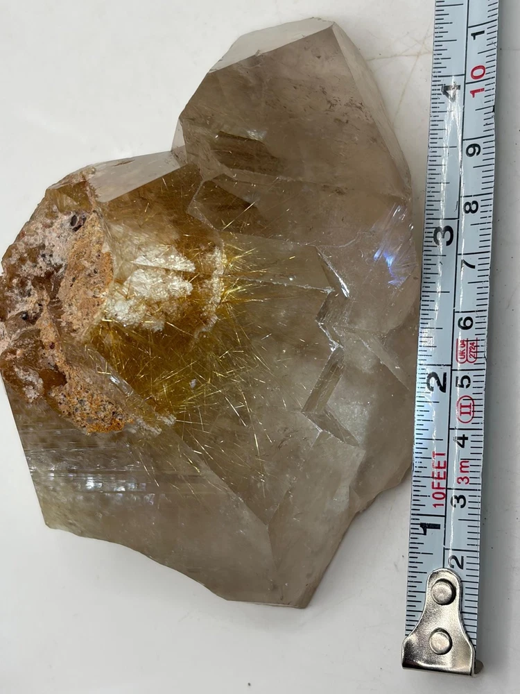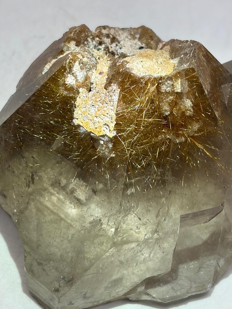 We are pleased to present this top-shelf Rutile Quartz specimen, a striking piece richly saturated with golden rutile. The majority of the surface is beautifully enveloped in shimmering golden needles, giving it an eye-catching brilliance and exceptional visual depth. This radiant and highly aesthetic specimen would make a stellar addition to any crystal or mineral collection, especially for those who appreciate high-quality rutile formations.
