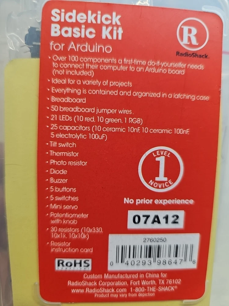 Radio Shack SIDEKICK BASIC KIT for ARDUINO Level 1 novice NEW SEALED BOX