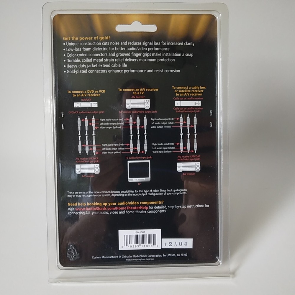 RadioShack 15-1507 Gold Series Stereo Audio/Video Cable. This AV Cable is new in its original package. The package is in good condition. See pictures for a detailed look at this item. Will ship well protected in a small box. Thanks for the interest in the cable.