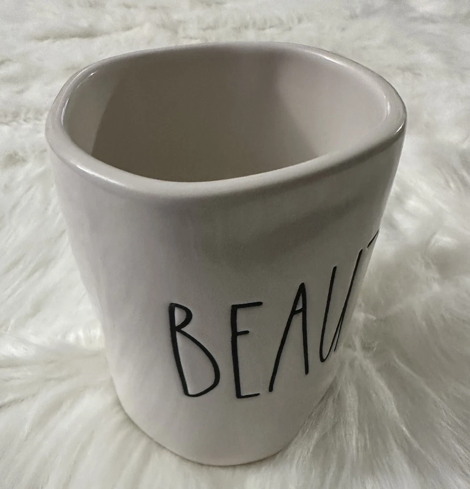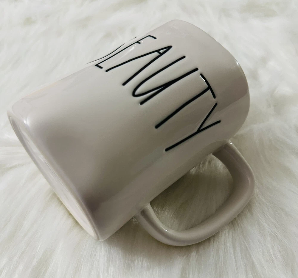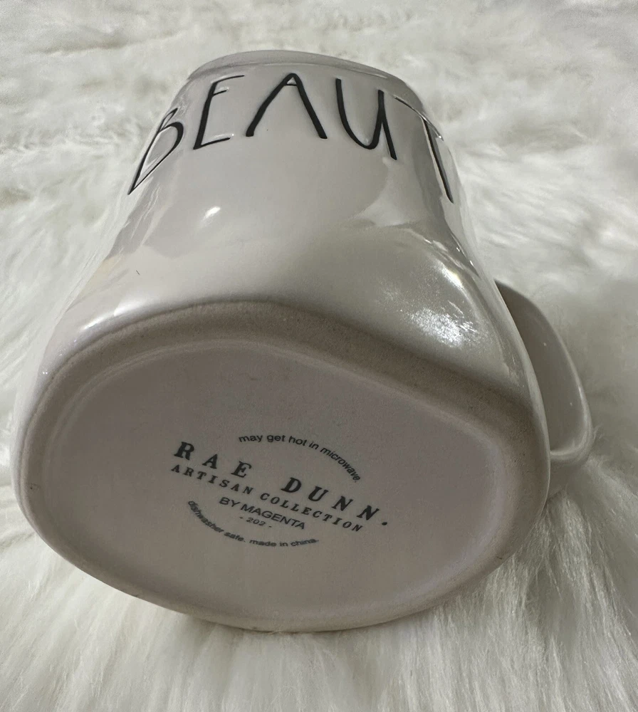 The Rae Dunn BEAUTY Large Letter Coffee Mug is part of the Artisian Collection and features a contemporary design with a white ivory color. Made of ceramic, this 20 fl oz round mug is ideal for all occasions. The mug showcases the word "BEAUTY" in large letters, adding a touch of elegance to your kitchen or dining area. Perfect for enjoying your favorite hot beverages in style, this novelty mug is a stylish addition to any home. Excellent Condition Please view photos for exact item condition